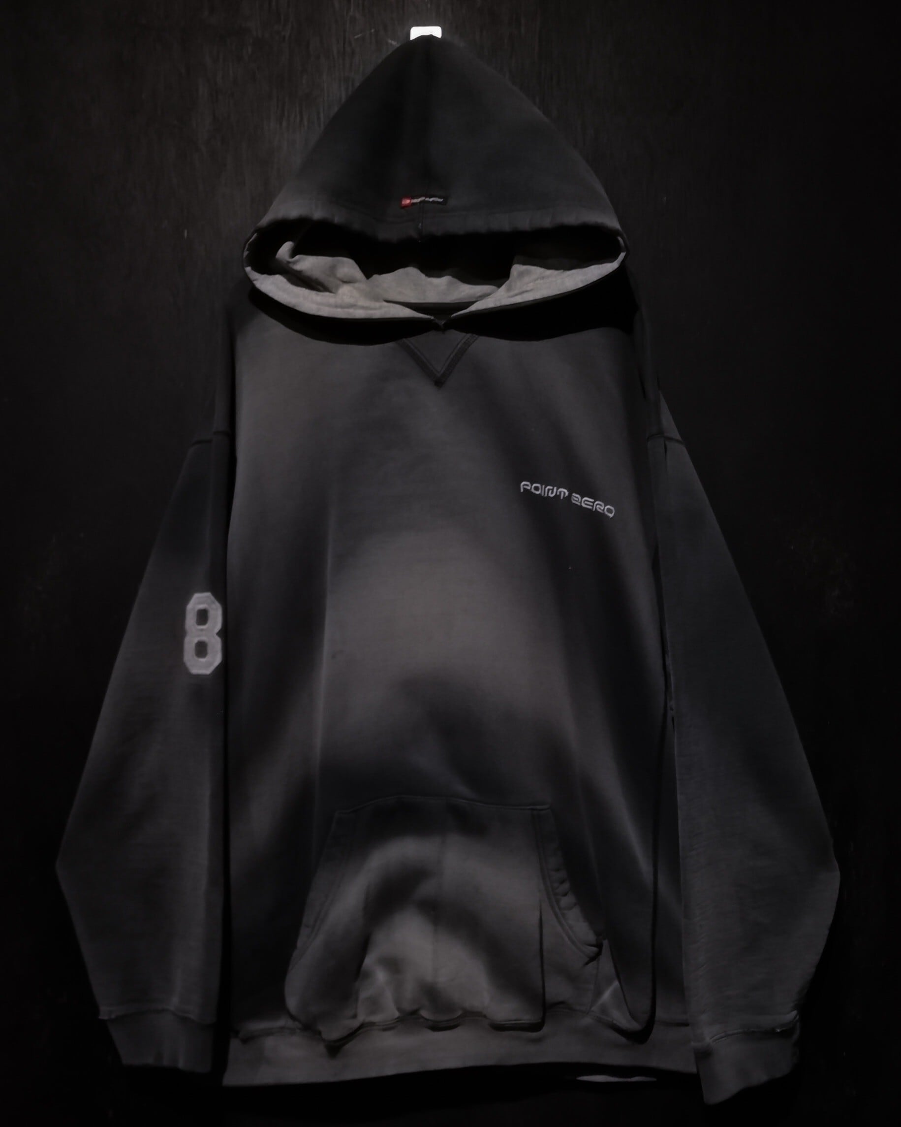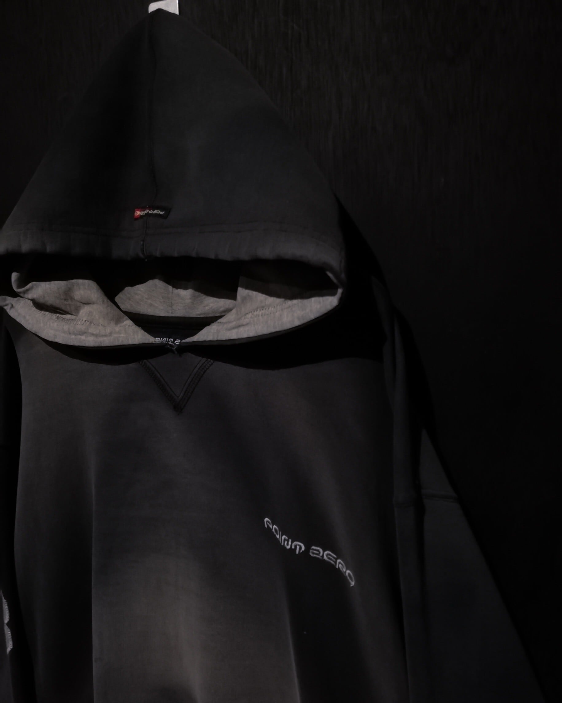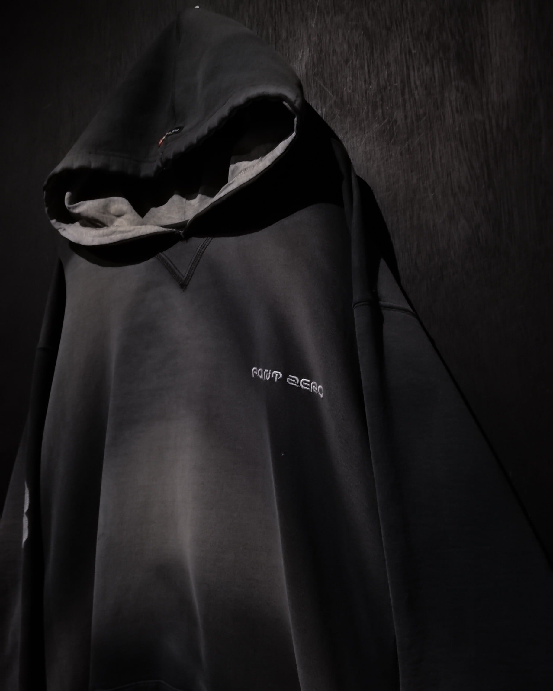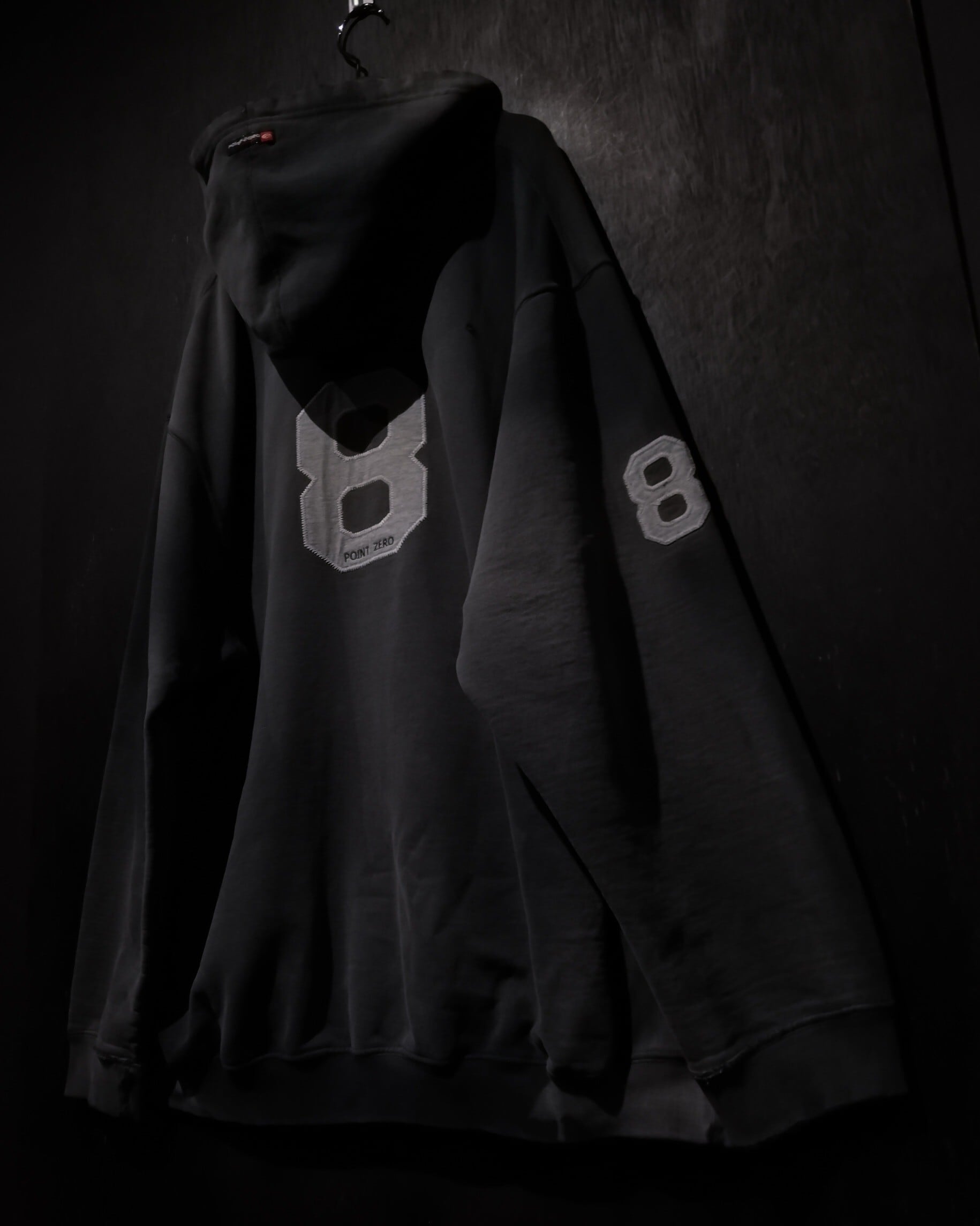 サンフェードにより、絶妙な色落ちがデザインとしてひかるブラックのボディをベースに、ナンバーのパッチを載せたジップアップフーディ。