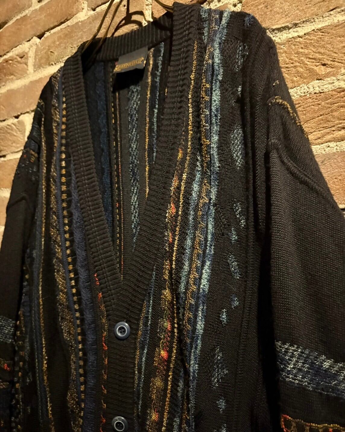 年々稀少価値が高まり、ヴィンテージ業界でも高騰化した3Dニットをベースに、美しいマルチカラーの糸を織り込んでデザインに落とし込んだ逸品。