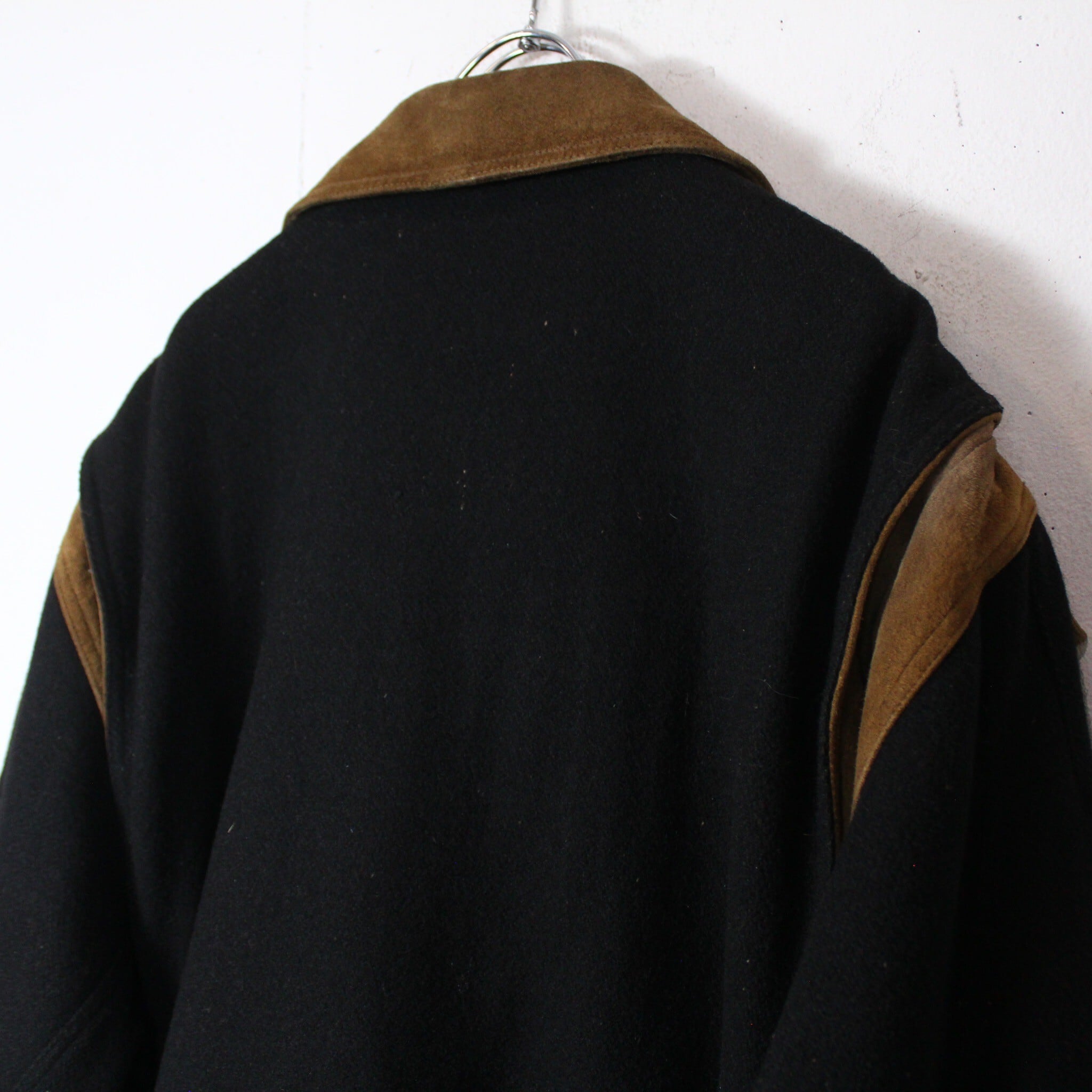 柔らかい上質なブラックウールをベースとし、上品なブラウンスエードを切り替えしたジャケット。