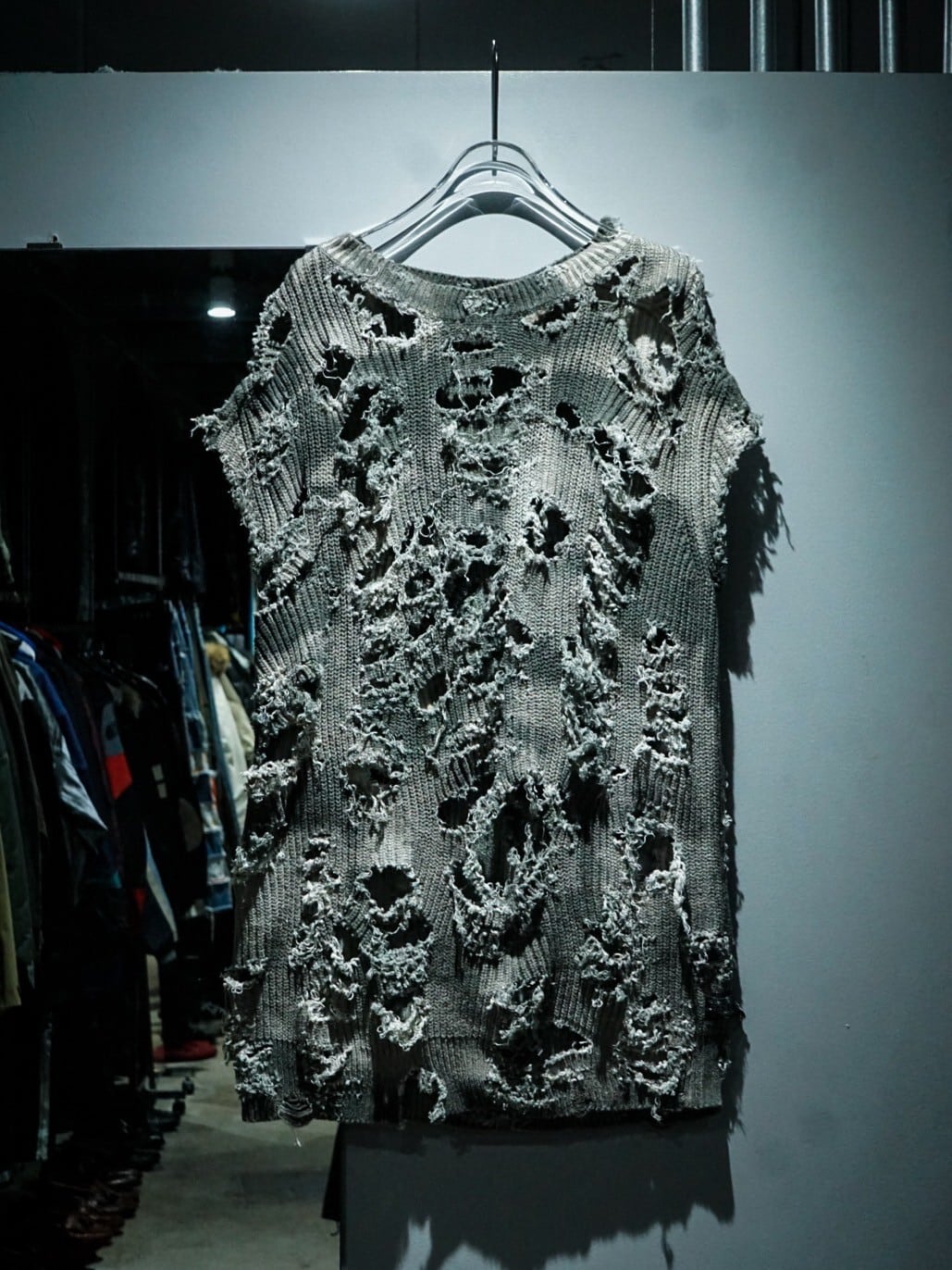 全体的にブリーチ加工を施し、身頃部分にはボロ加工の施し。表情が異なるブリーチの表情とボロを掛け合わせることで、デザインに立体感のある奥行きが生まれます。