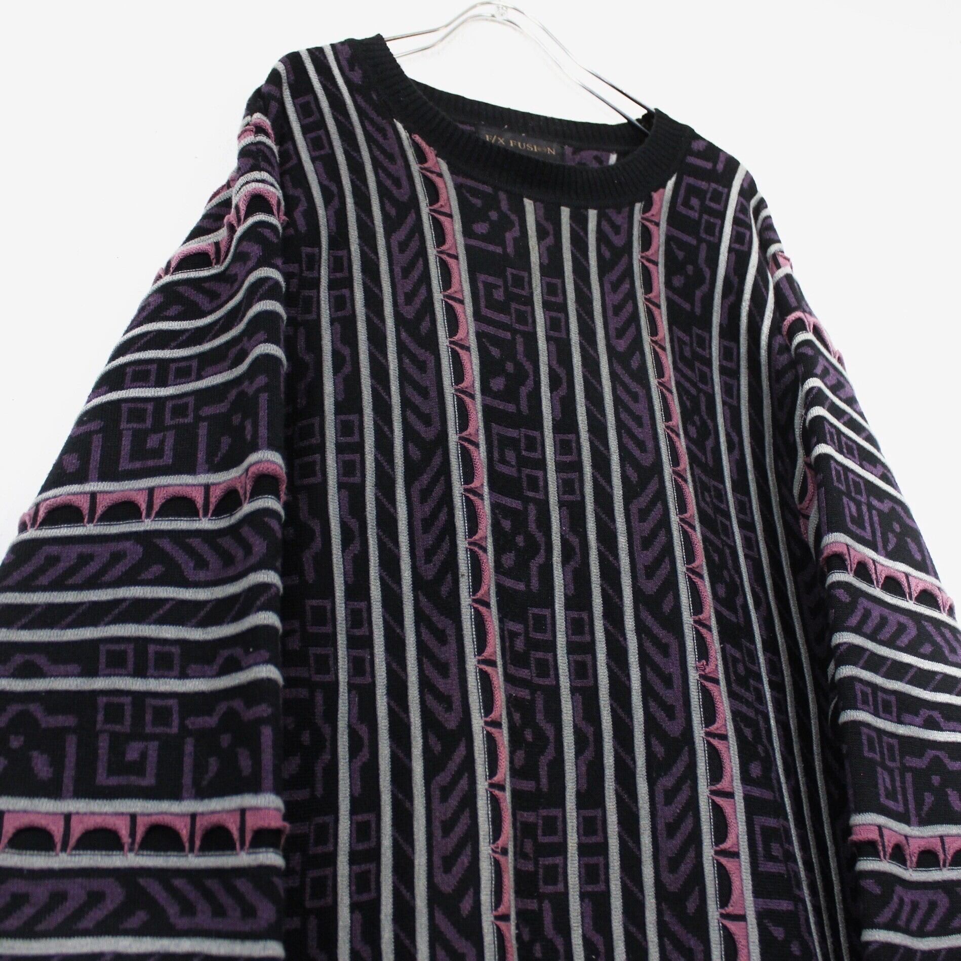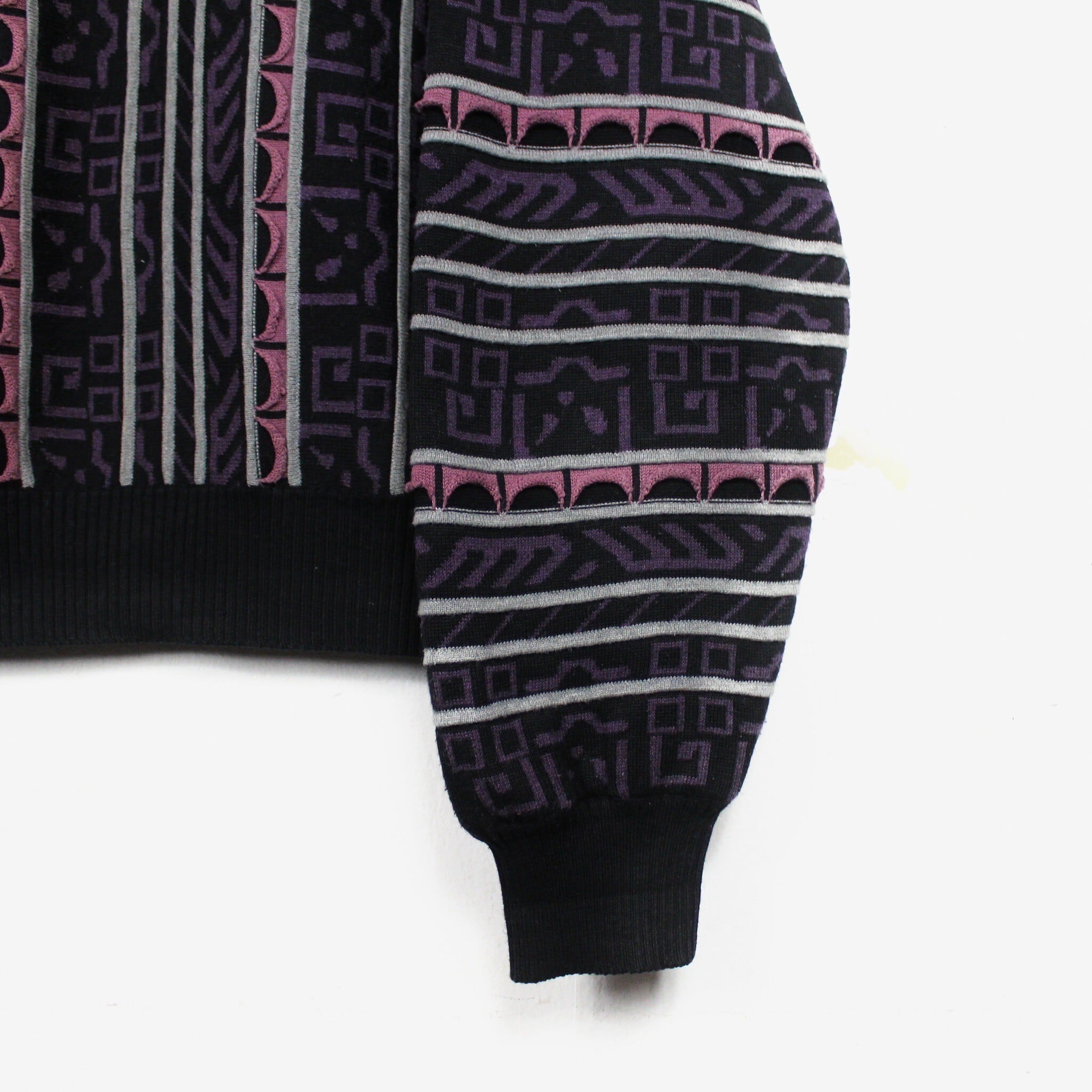 黒、紫、ピンク、白のどこか毒々しくもアーティスティックな雰囲気を放つカラーリングで纏められた3Dニット。