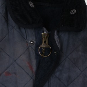 ハリのある柔らかな素材を用いてキルティングで仕上げたカバーオールジャケットのボディに、経年変化によるフェード、前の持ち主によるブリーチカスタムが施された逸品。