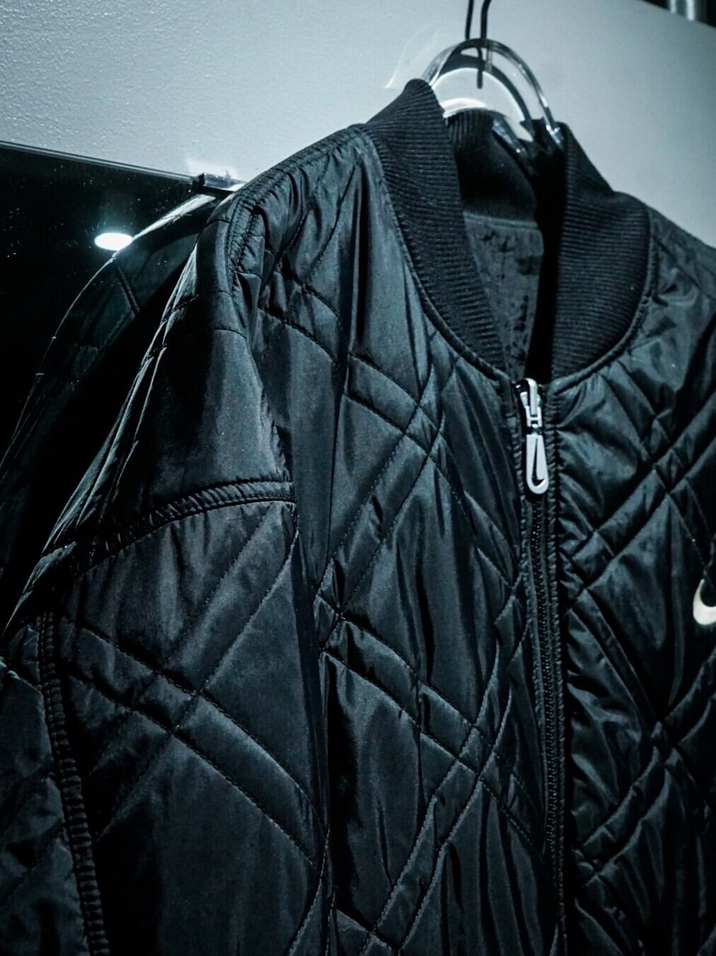 シャリ感のあるブラックのボディーにNIKEのブランドロゴを左胸にON。裏返すとキルティング仕様のボディになっており、フロント、バックにブランドロゴを載せた両面洗練されたデザインに仕上げられた1着。