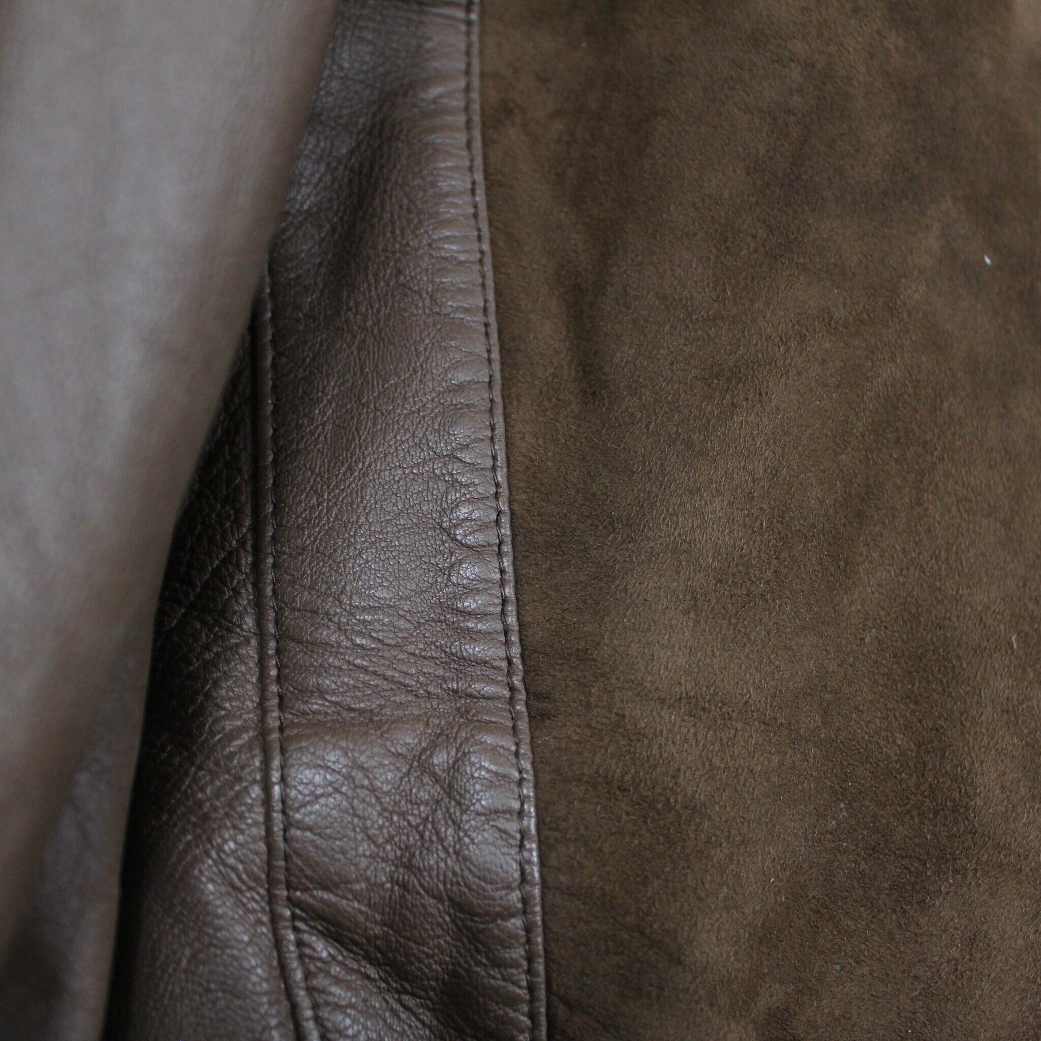 しっとりとしなやかなスエードレザーに、スムースのレザーを切り替え、スエードレザー裏にはムートン調のファーを施し、その他の部分にはキルティングを裏地に採用した稀有かつスペシャルな逸品。