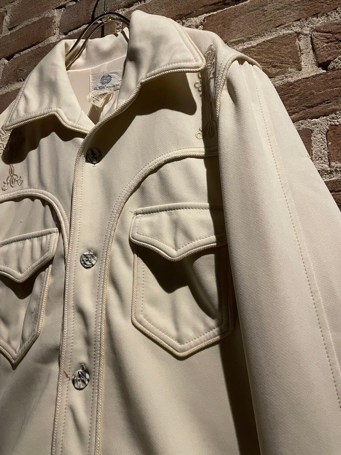オフホワイトを基調としたボディーに、ウエスタンジャケットならではの逆山形ヨークやスナップボタン、フラップポケットなど、"これぞウエスタン"と言ったディテール。