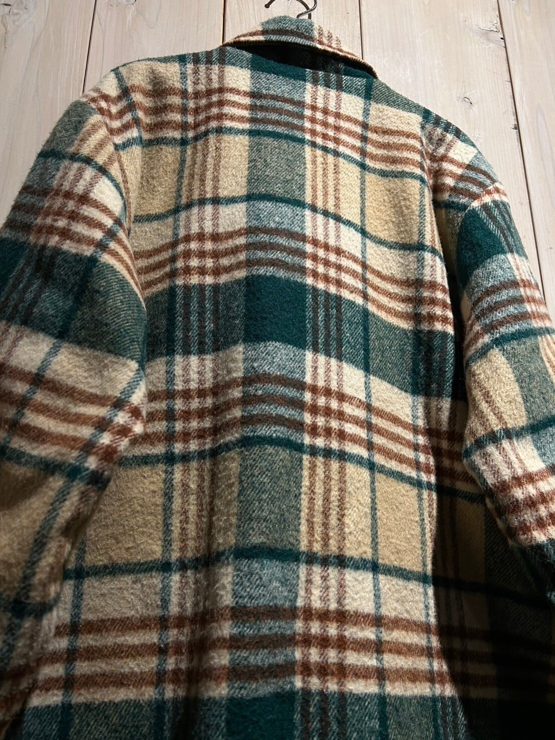 柔らかく上質なウールを用いたボディに、ブラウン×グリーンでチェック柄を載せたウールシャツジャケット。