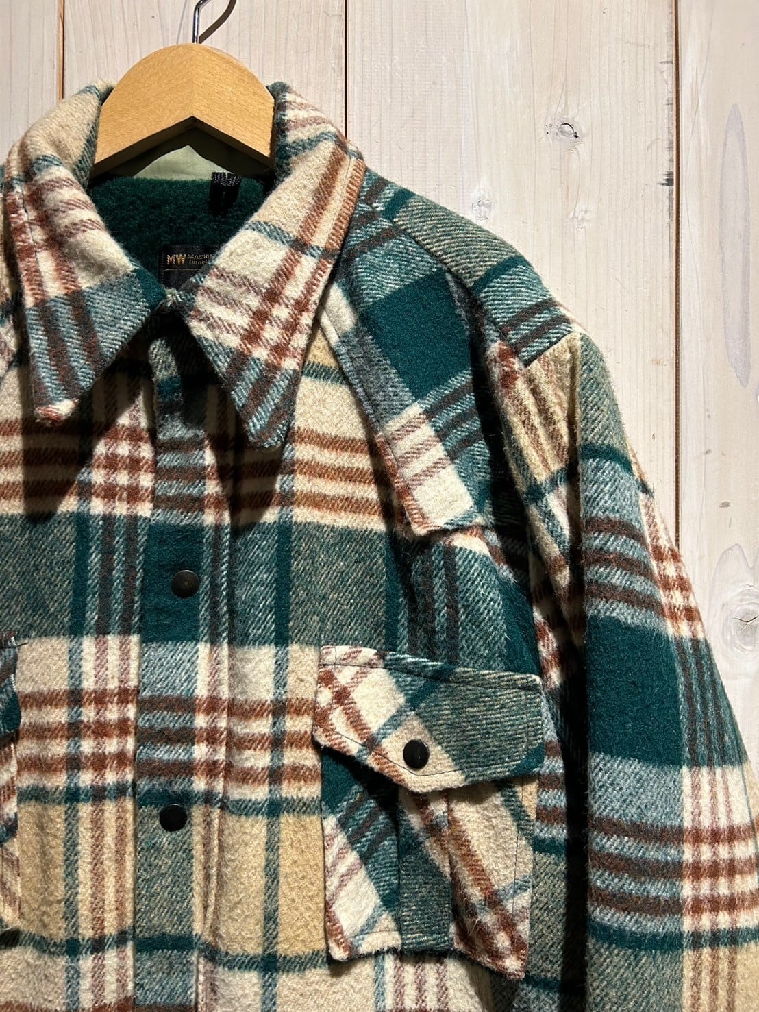 70'sらしい大ぶりな襟元にヨークの切り替えやスナップボタン、年代らしい無骨な印象が古着好きの心をくすぐりますね…