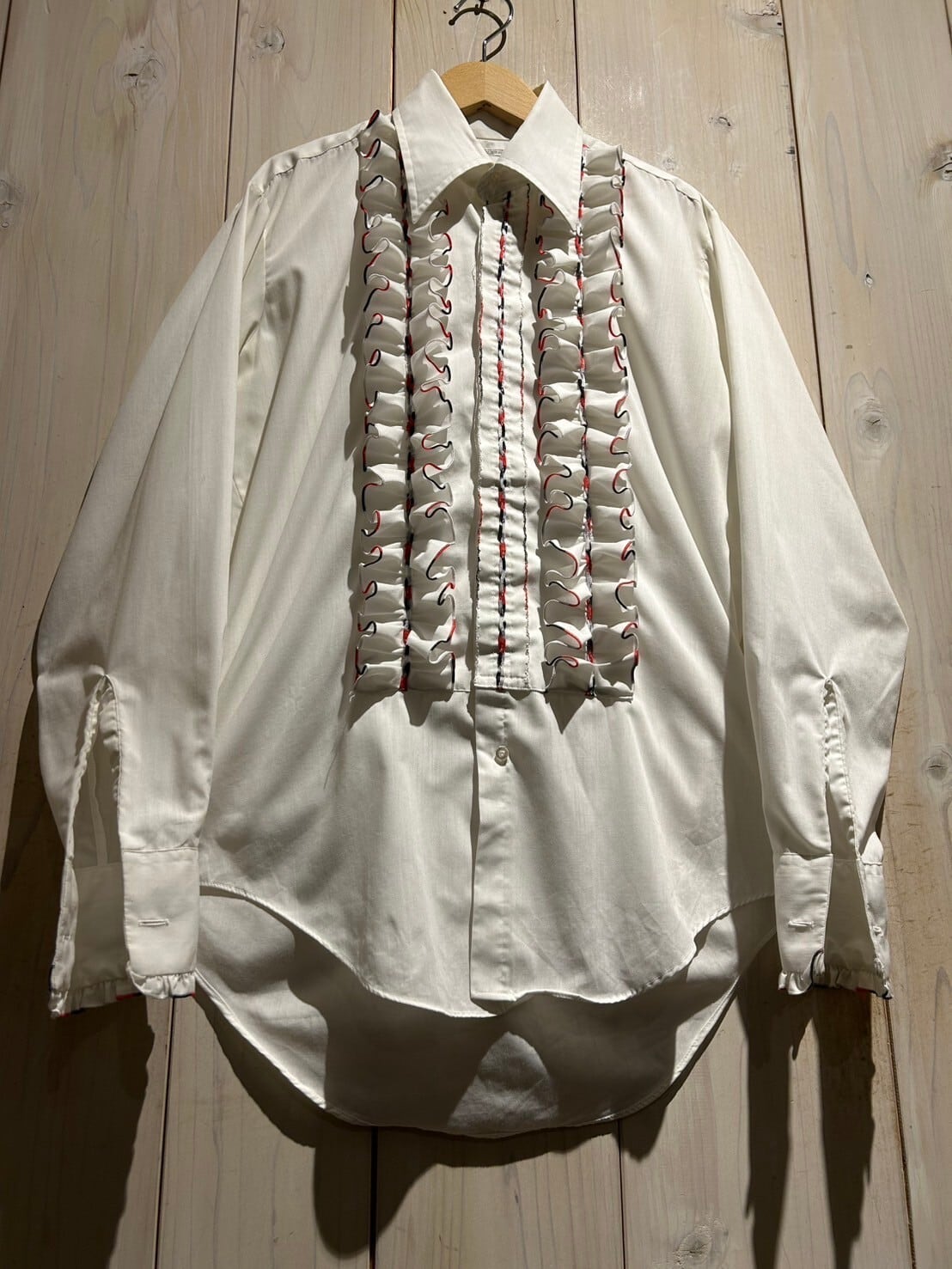 稀少性に比例してかなり高騰化が著しく、仕入れるのもかなり苦労するほど稀少性が高まっている、100年以上の歴史を持つアメリカの老舗フォーマルウェアブランドである"After Six”より、代名詞である王道アイテム、1970年代の上質なフリルシャツをご紹介致します。
