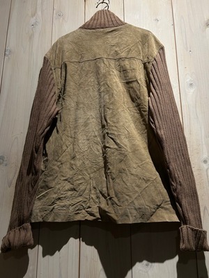 身頃にはスエードレザーを、アームと首周りにはニットを切り替え。ニットの柔らかな質感と立体感、そして極上のレザーの素材感のコントラストが絶妙なバランスで落とし込まれ、ユーロヴィンテージならではの雰囲気を醸し出しています。