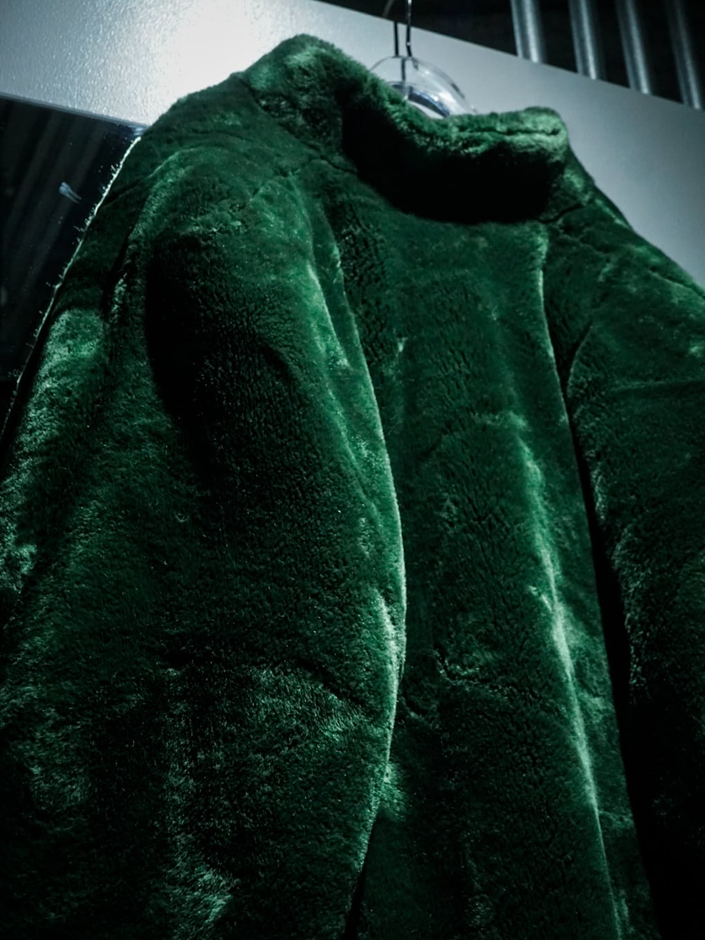 ファーコートの中でも非常に稀有なカラー物の中より美しいなグリーンカラーの1着をご紹介いたします。