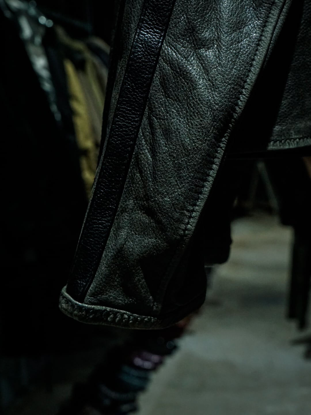 店頭に足繁く通っていただいているお客様をはじめとし、業界関係者の方々からもお墨付きをいただいている当店のレザーアイテムより、上質な素材と各所のディテールが目を惹く1着をご紹介。