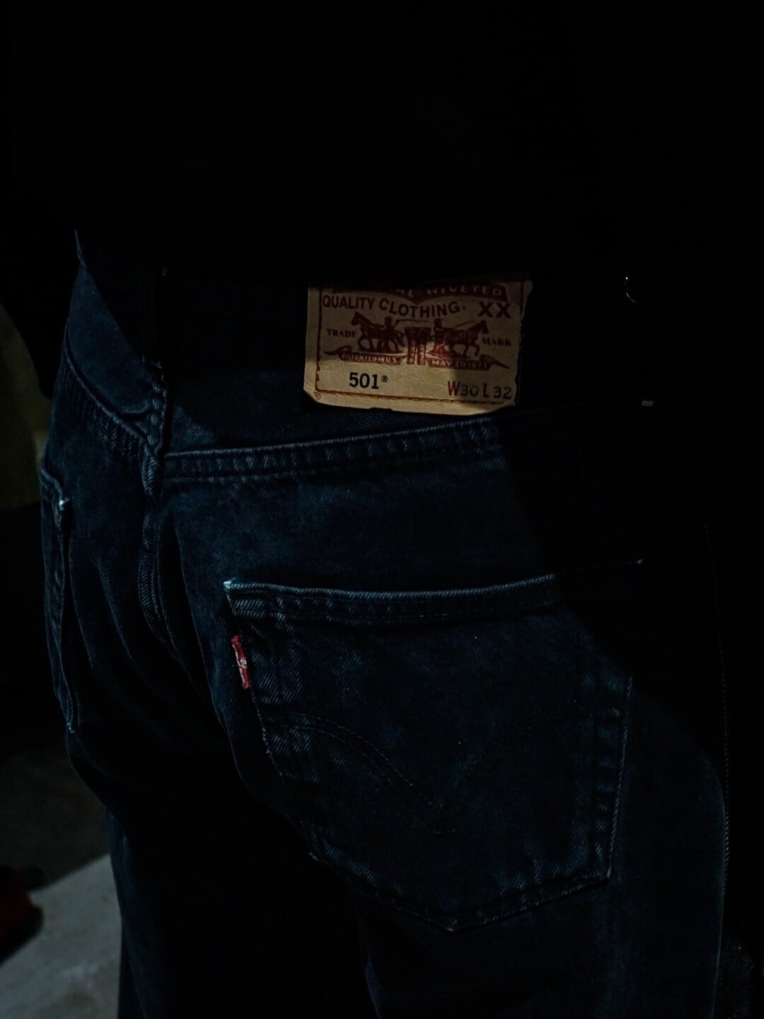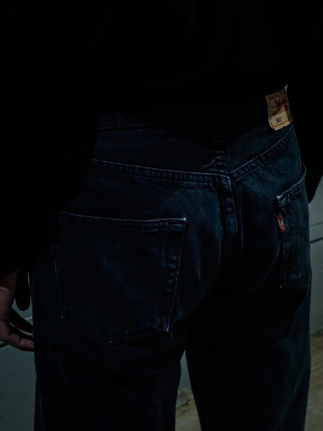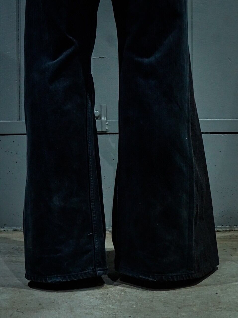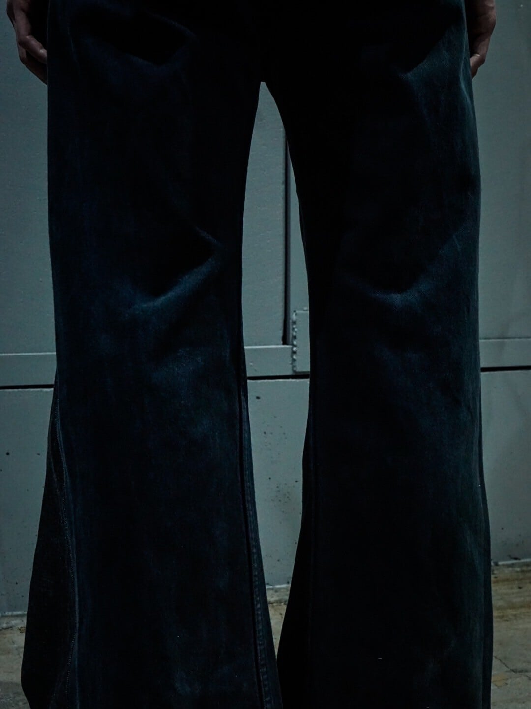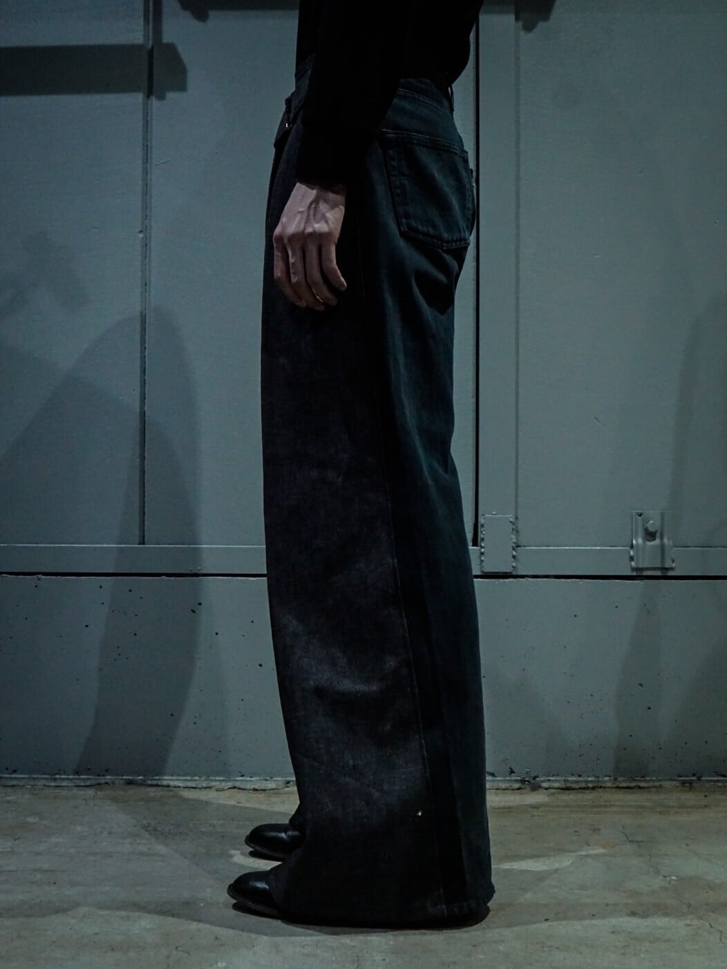 当店が誇る"Original Remake"シリーズより、2色のデニム生地をドッキング。140cmを超えるウエスト部分を折り返し、立体的なレイブシルエットを生み出すリメイクの1着をご紹介致します。
