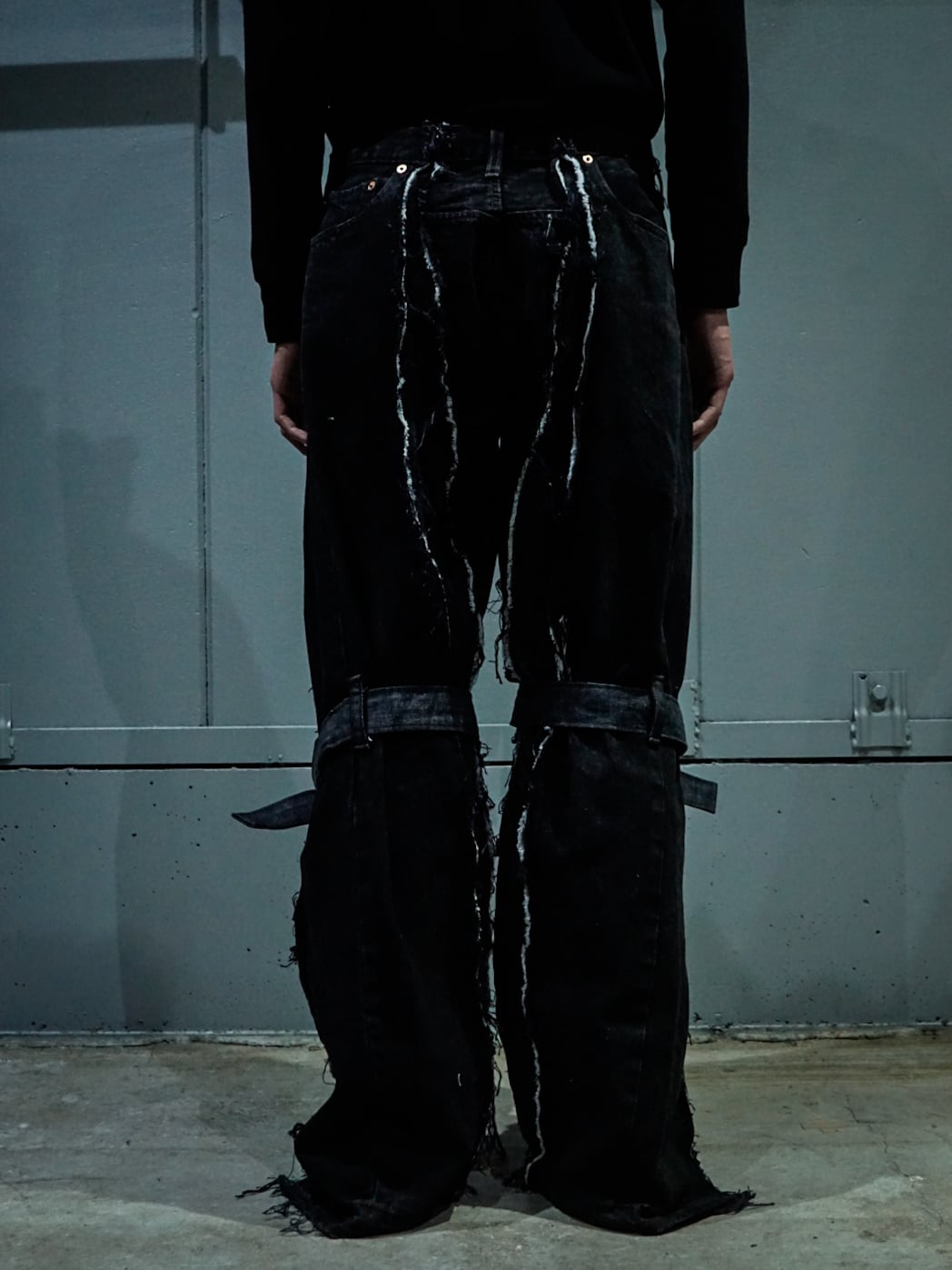 ボンテージというカルチャーを当店ならではの解釈の元、リメイクパンツへと落とし込んだ正に唯一無二な逸品。私たちが誇る“Original Remake”のスペシャルピースです。