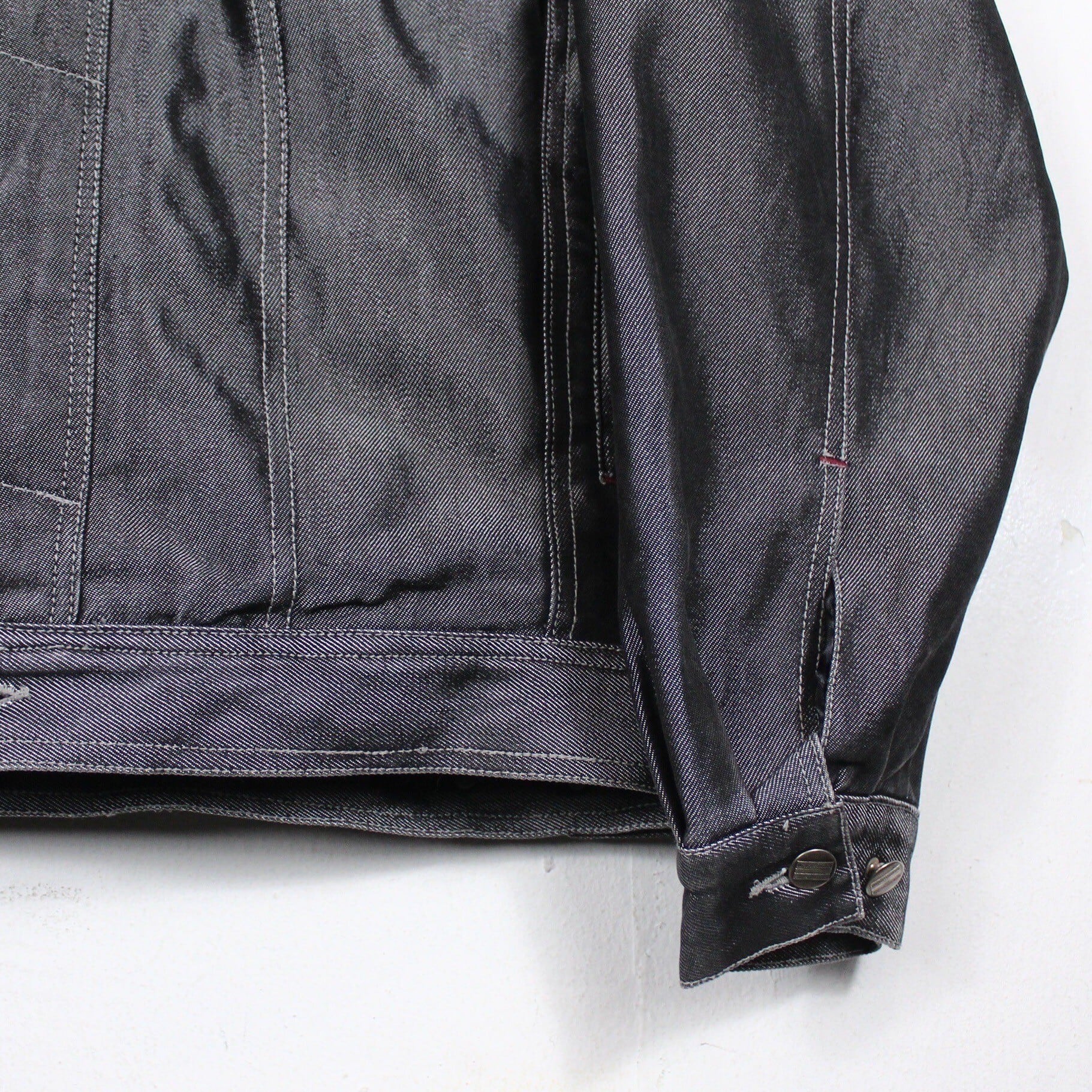 コットン素材をベースに、光り輝くメタリックなポリエステル素材の繊維が織り交ぜられた、ラグジュアリーな雰囲気を醸し出す至極のデニムジャケット。