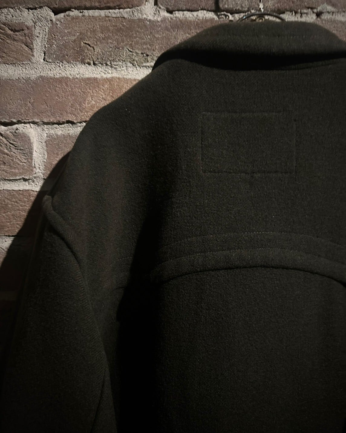 漁師が手袋をしたままでも着脱がしやすいようにした特徴的なトグルボタンに、ループ部分にはレザーを用いた拘りよう。手の出し入れが容易な大きいポケットと、元々は機能性を高める為のディテールですが、同時にデザイン性と圧倒的な存在感を発揮。