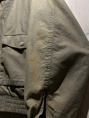 コットンを用いたハリとコシのあるタフなファブリックをボディに用い、アメリカ空軍の名品"A-2"フライトジャケット型で仕上げた1着。