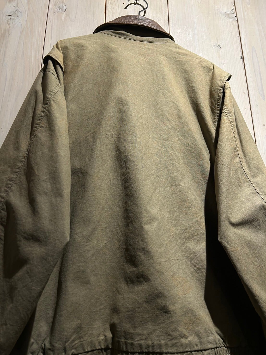 襟にはブラウンのレザーによる切り替えが施され、ボディの質感とも掛け合わさり、深みのある表情を生み出した非常に洒落た逸品です。