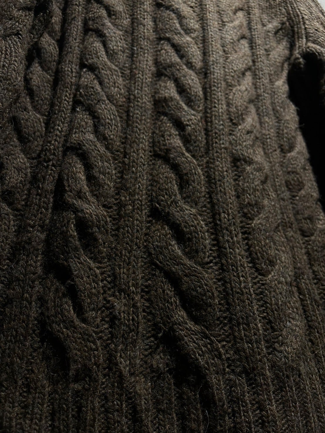 上質なニットボディから漂う高級感に、ケーブル編みならではの立体的な表情。そしてトグルボタンが加わった、温かみのあるレトロな風合いを見せる逸品。