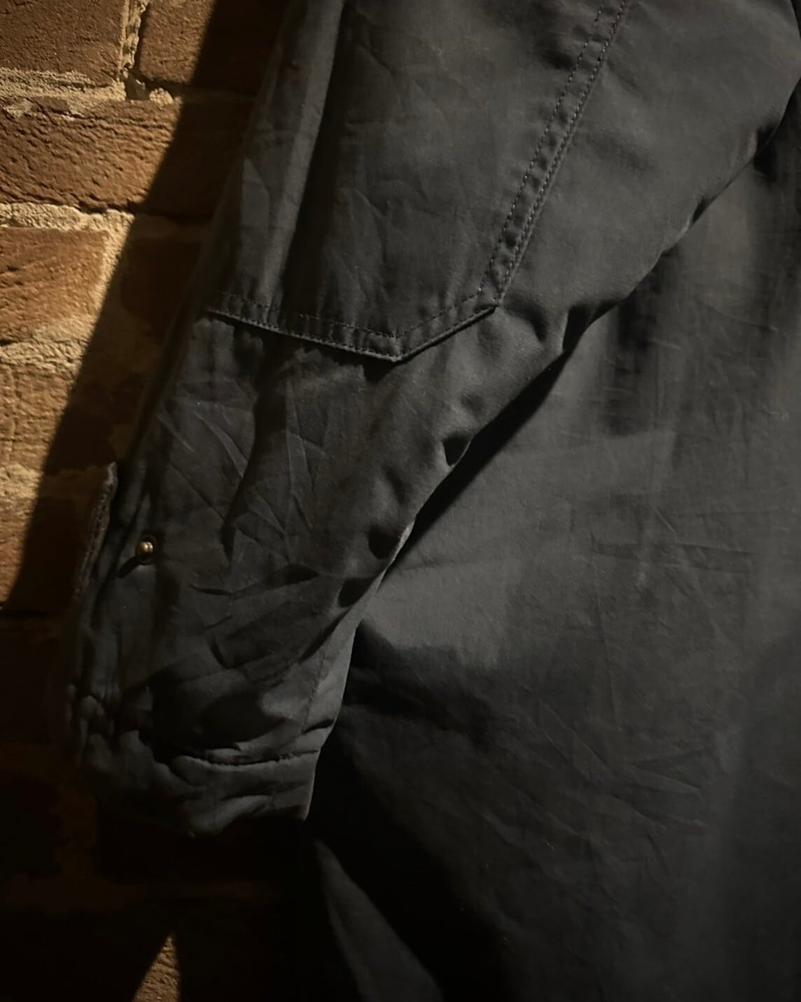 フロントにはフラップポケット、袖口にはアジャスターベルト、そして首元にはチンストラップをON。襟を立てて着ることができ、防風性に加えて、よりモードなルックスへと変貌を遂げます。機能性とデザイン性にも優れた1着。