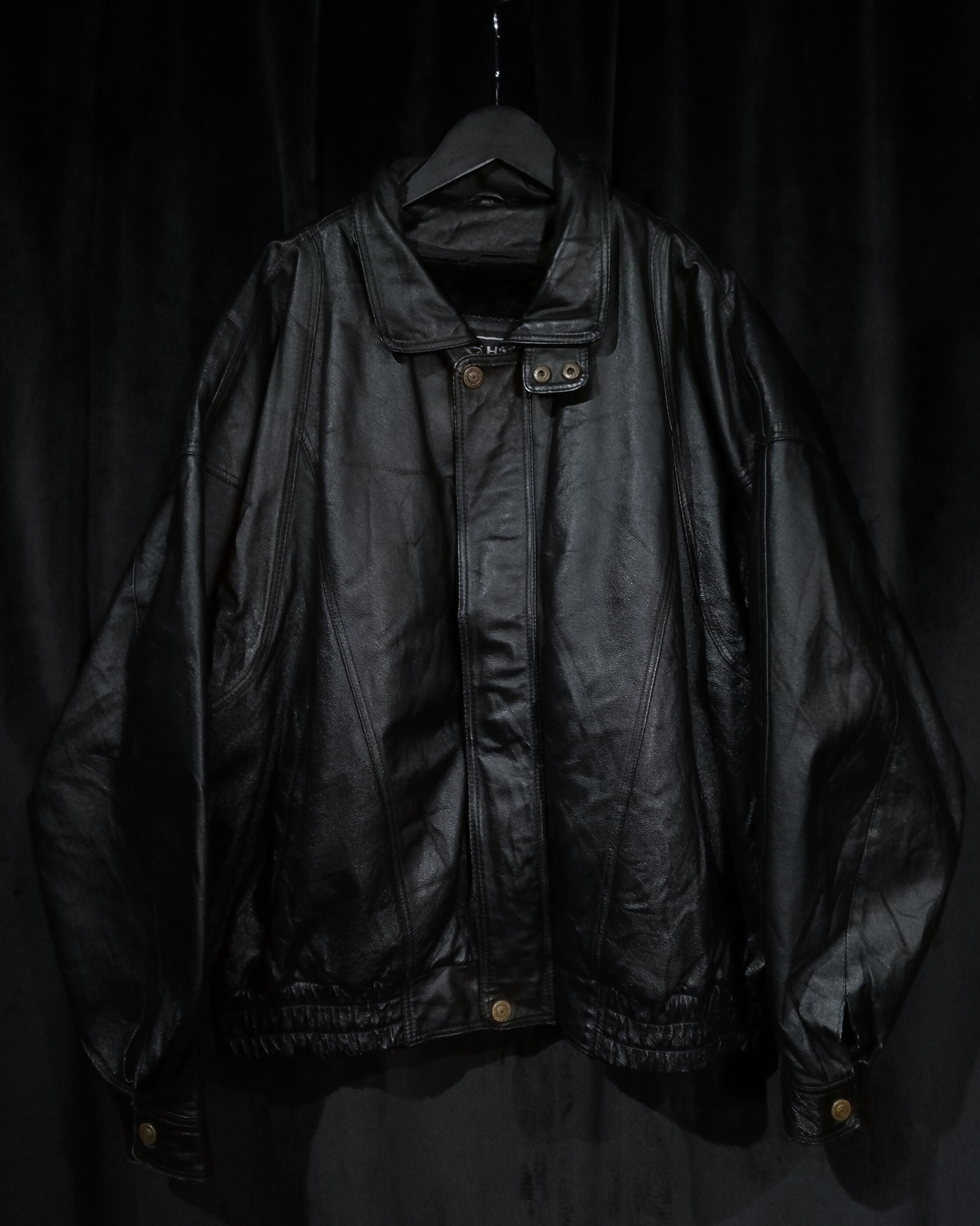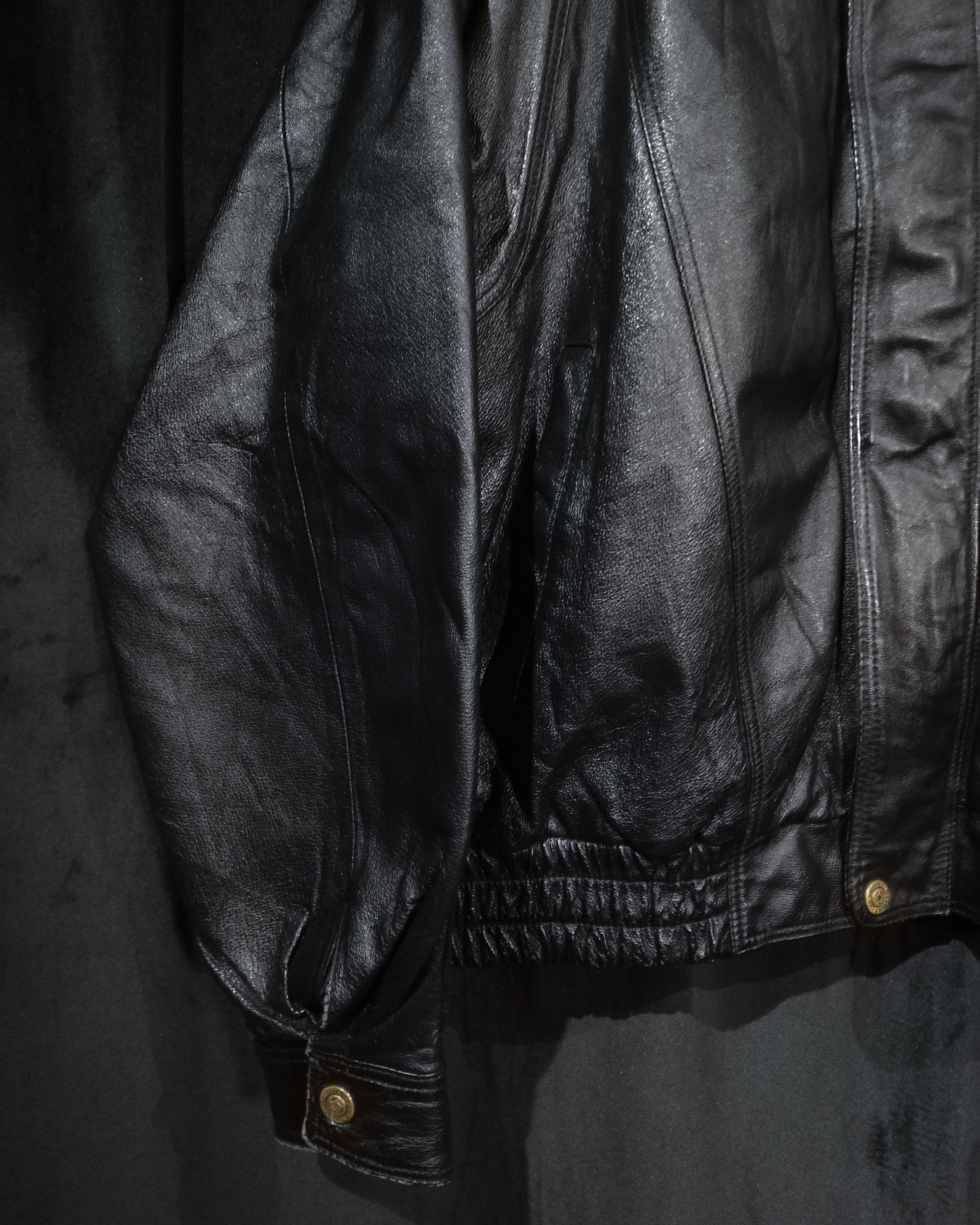 艶やかな光沢を帯びたブラックレザーをボディに用いたレザーブルゾンジャケット。