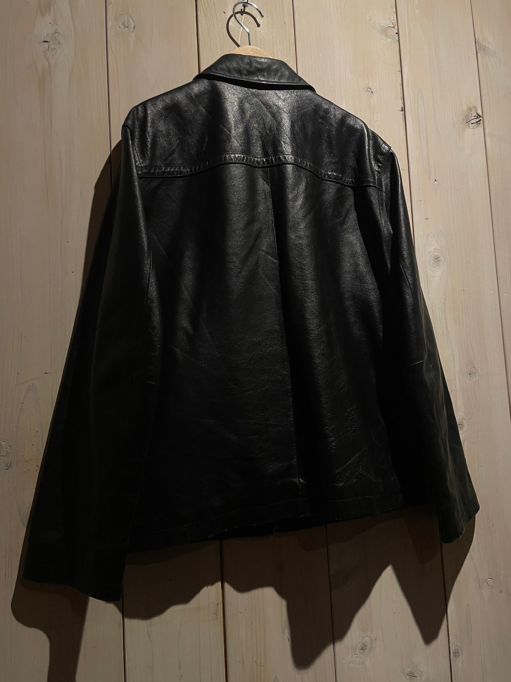 レザー特有の光沢を纏いながら、ハリ、コシを兼ね備えた上質なブラックの極上レザーを用いた1着。