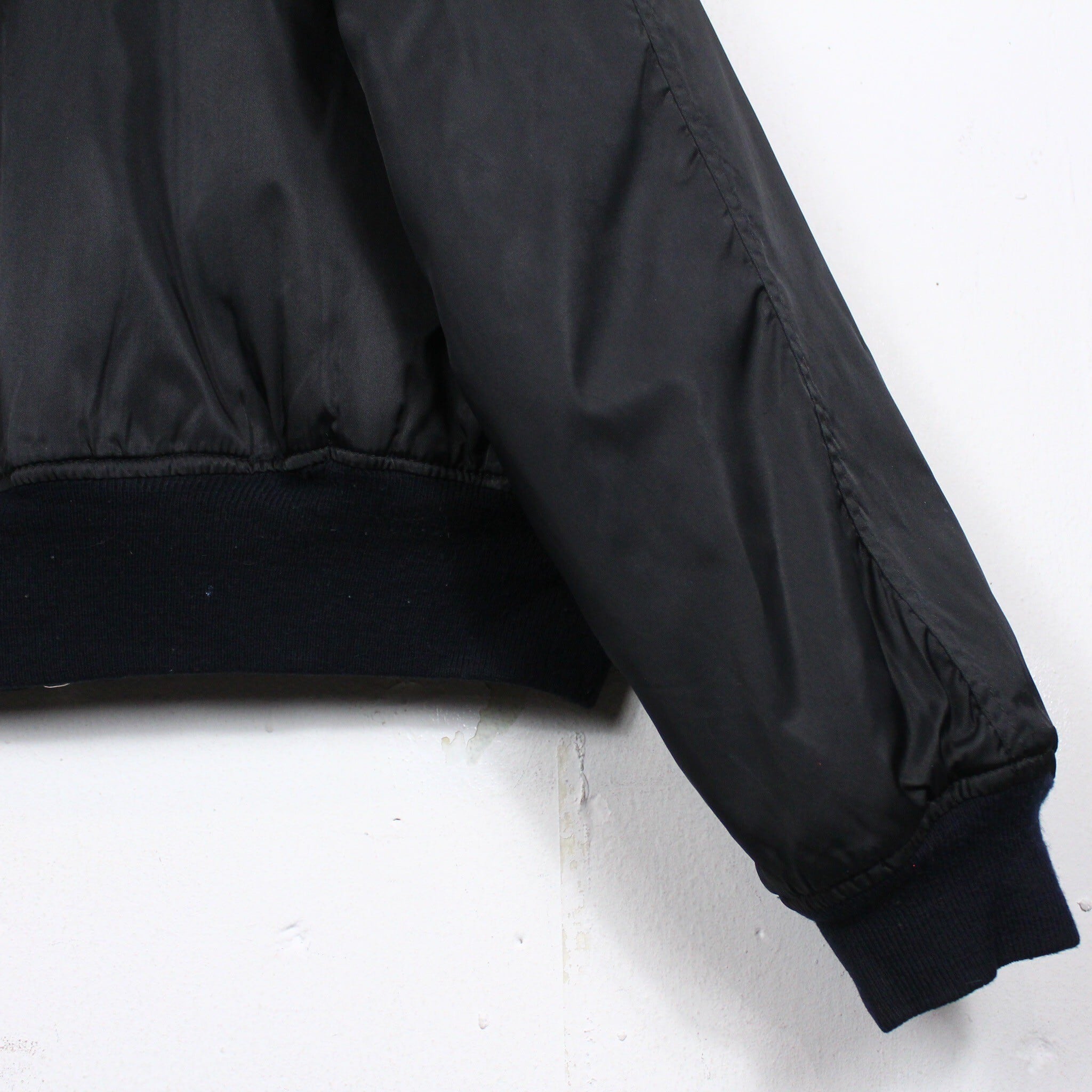 ブラックのMA-1をボディに採用し、左胸にリップ&タンの刺繍を刻み込んだ、至ってシンプルながらもロックな雰囲気を漂わせる1着。