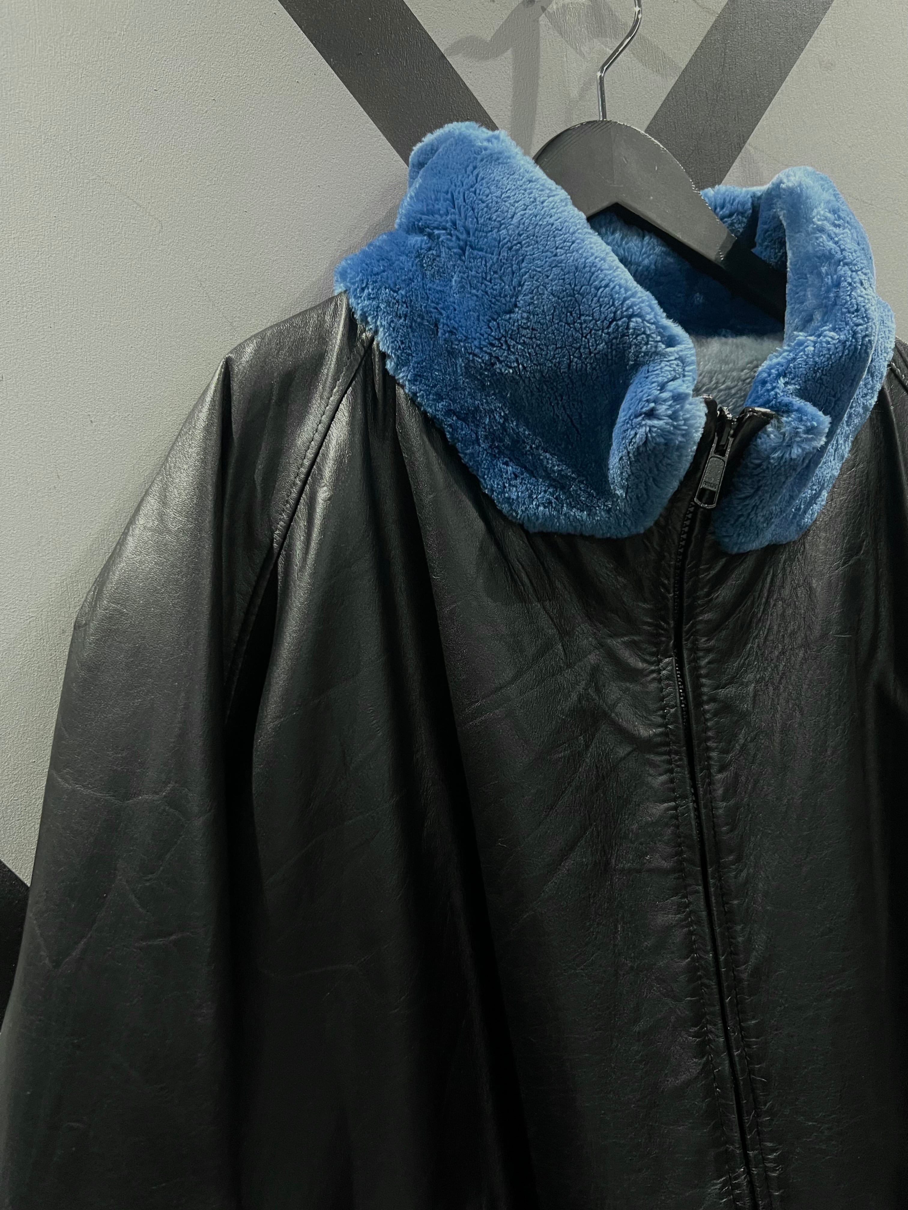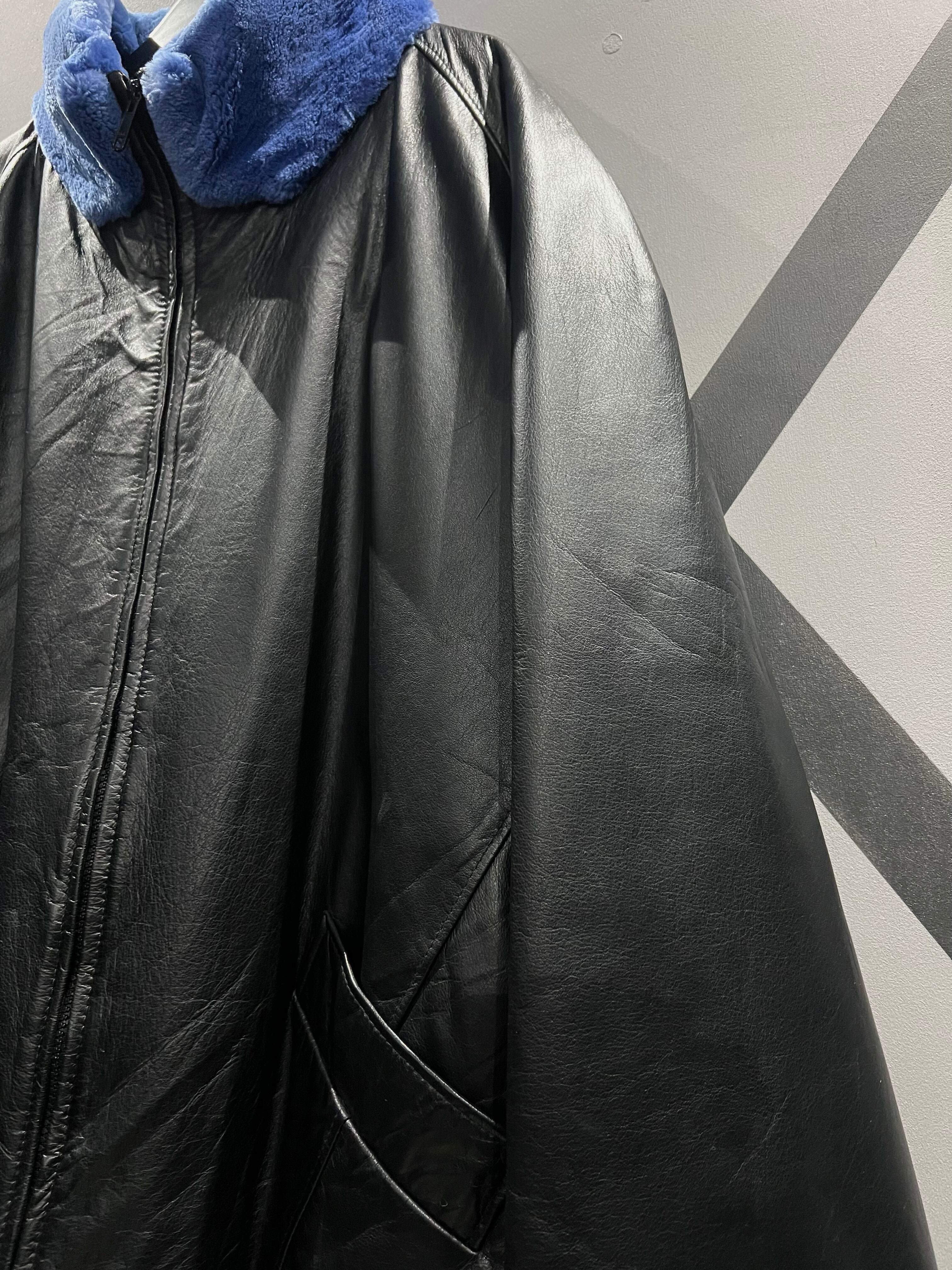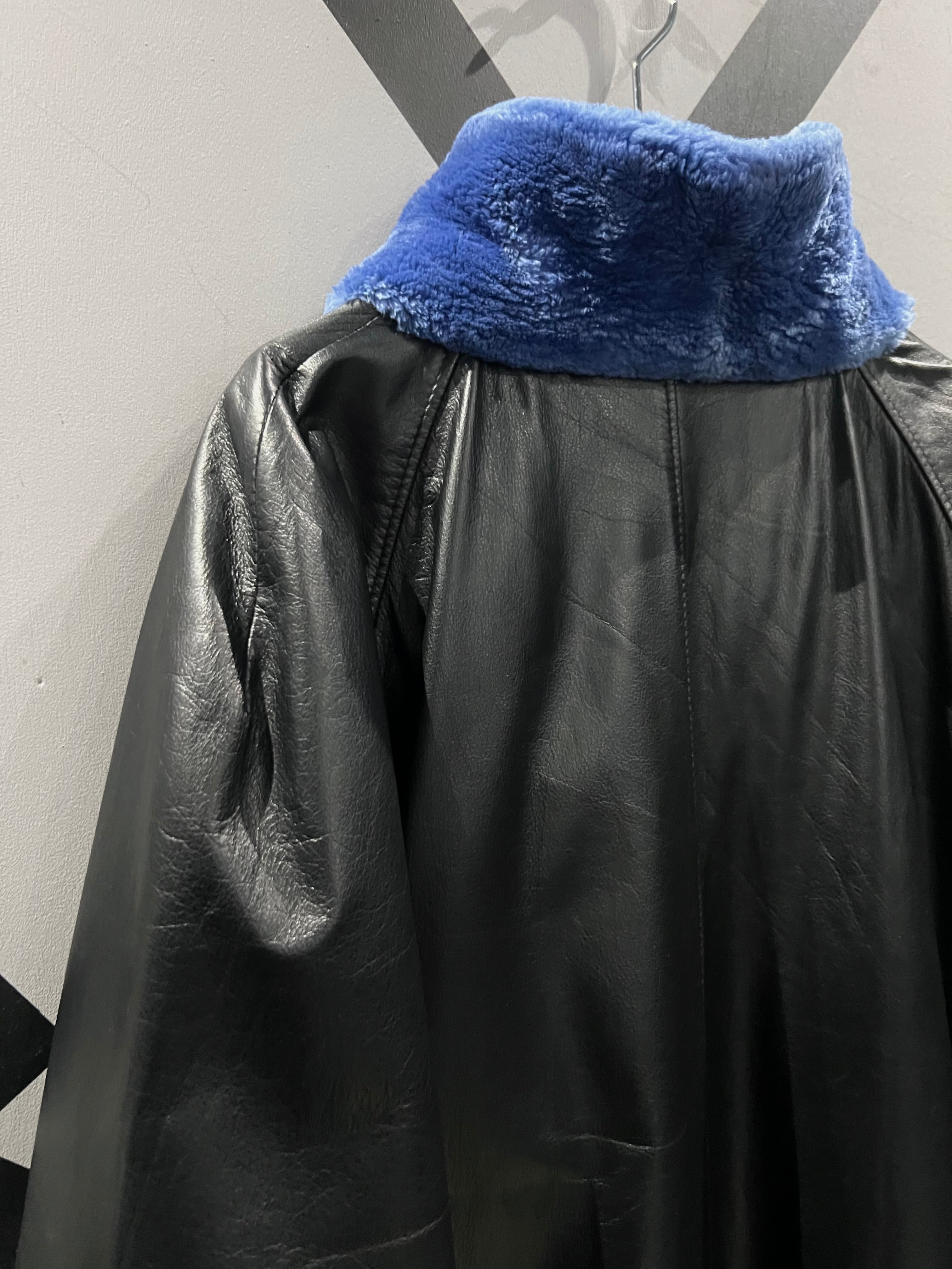 ハリのある極上ブラックレザー面、ガバッと裏返すとフワッと柔らかなファー面へと切り替わるリバーシブル仕様の稀有な逸品。