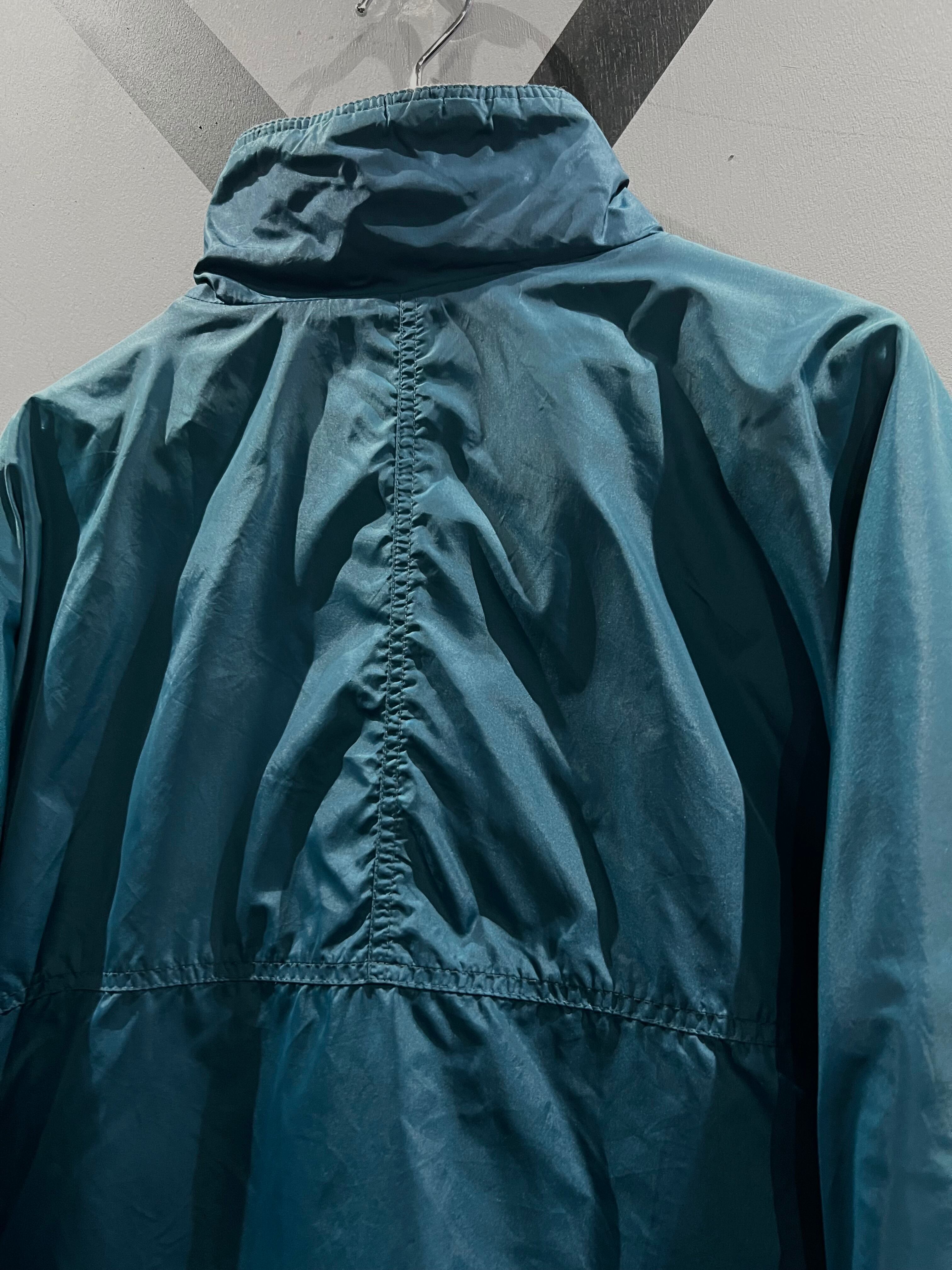 ブランドの代名詞的なカラーでもあるエメラルドグリーンにナイロン特有の光沢感を纏い、裏地はグレーのフリース素材、この当時の時代らしいカラーリングがレトロ感に加え何処か未来的な雰囲気も感じさせます。