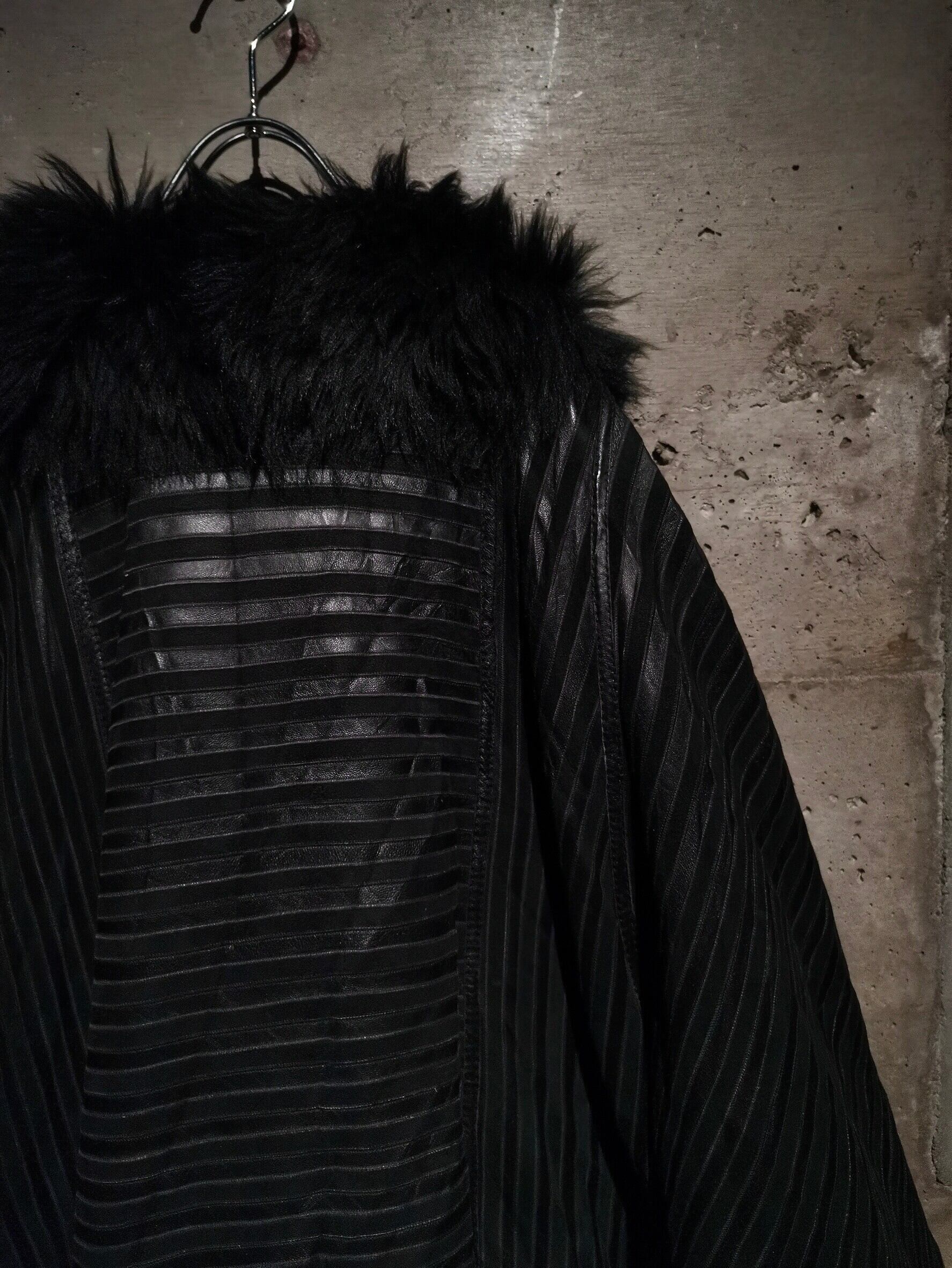 スムースレザーとヌバックレザーを切り替え全体にストライプ状の柄を配した、一際デザイン性の高い、他ムートンアイテムとは一線を画すクオリティを誇るスペシャルな逸品。