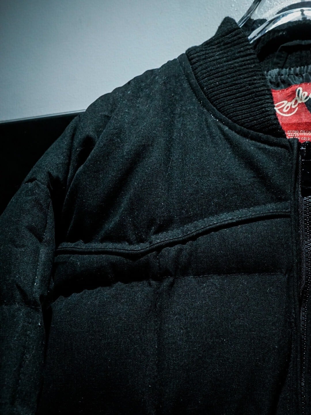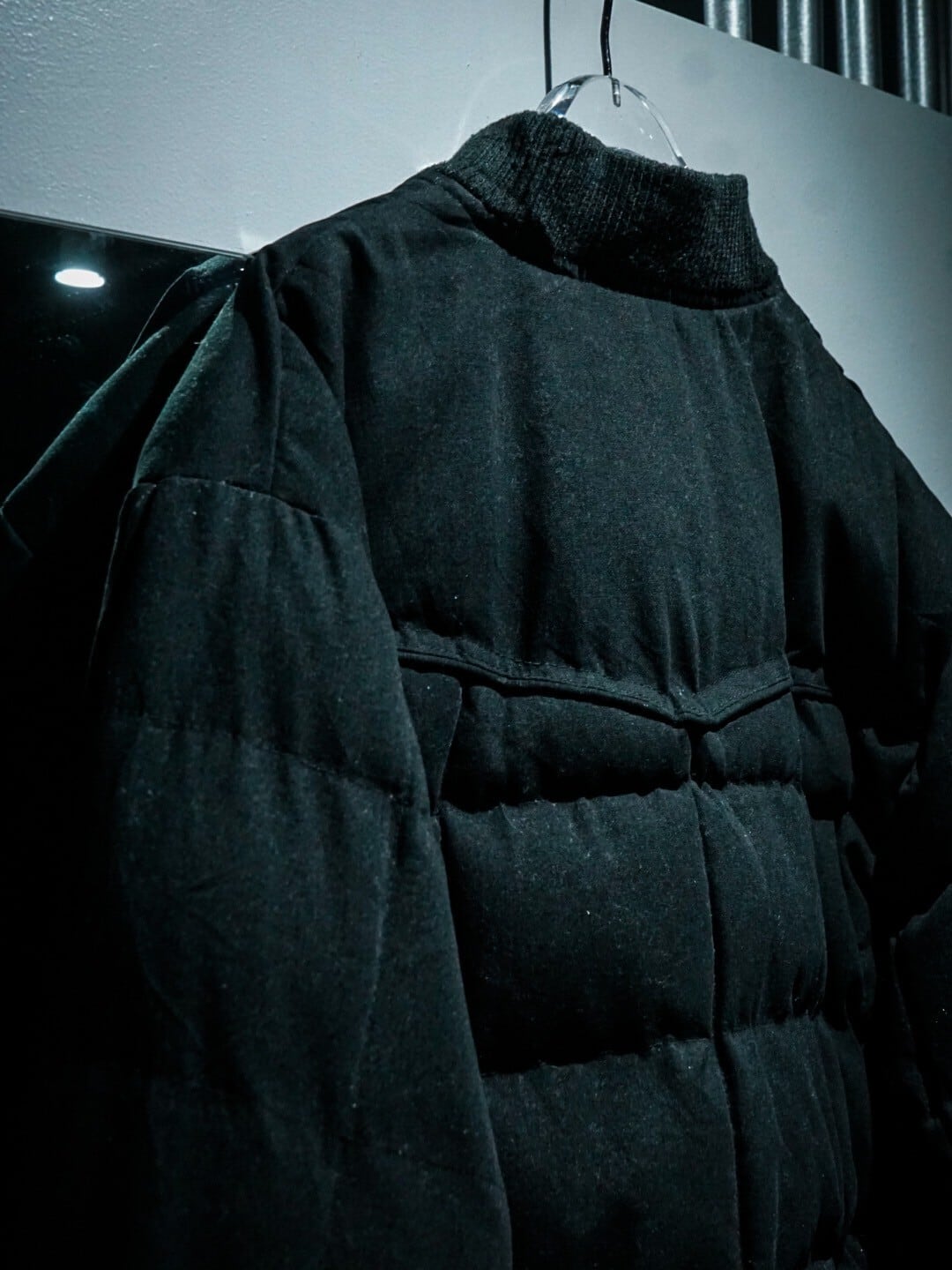 ダウンジャケットは冬のマストアイテムですが、この素材感のアイテムはありそうで意外と見つからないんですよね。そしてウエスタン調のヨークにシームが生み出す立体感は、オールブラックのボディに豊かな表情をもたらせてくれています。