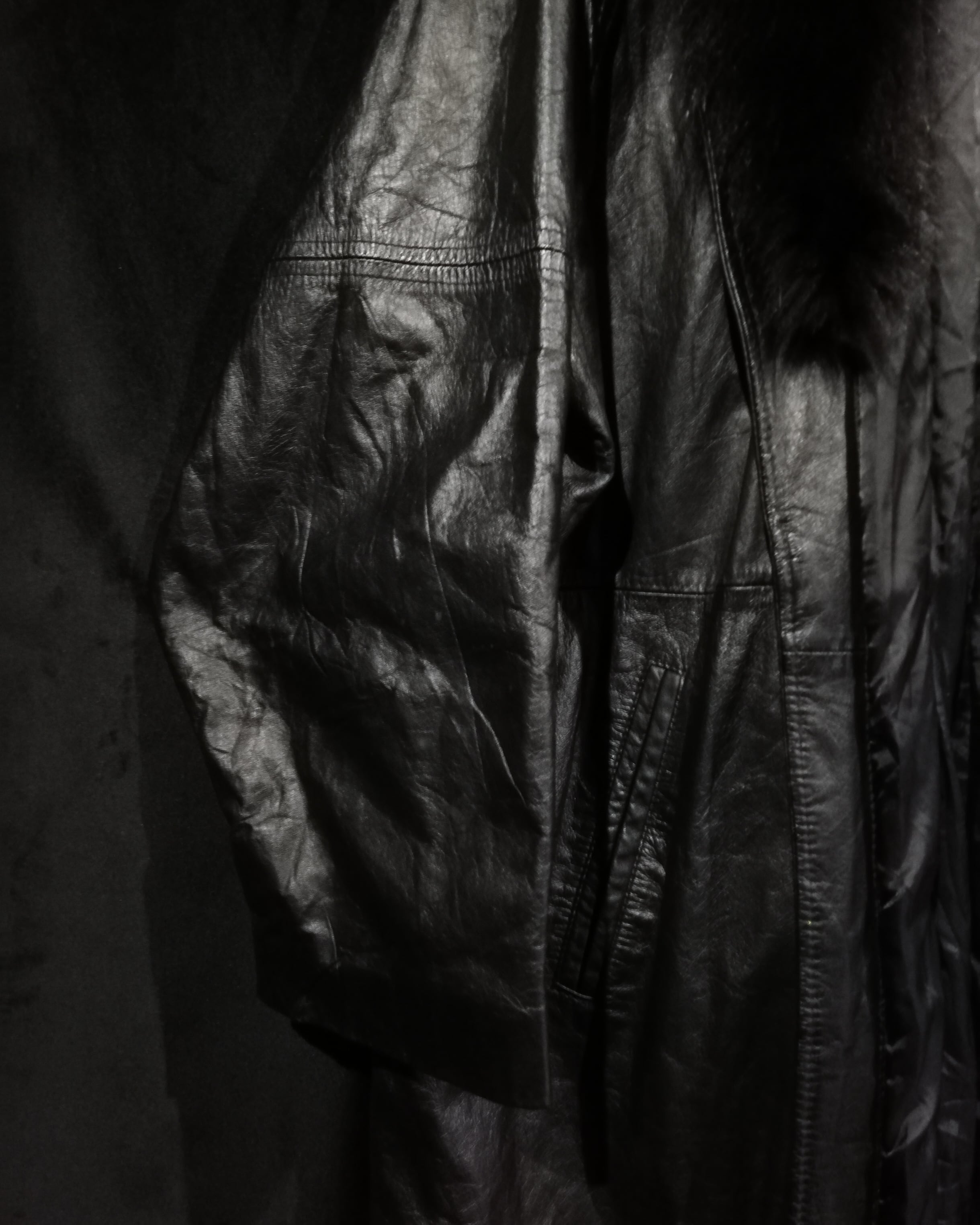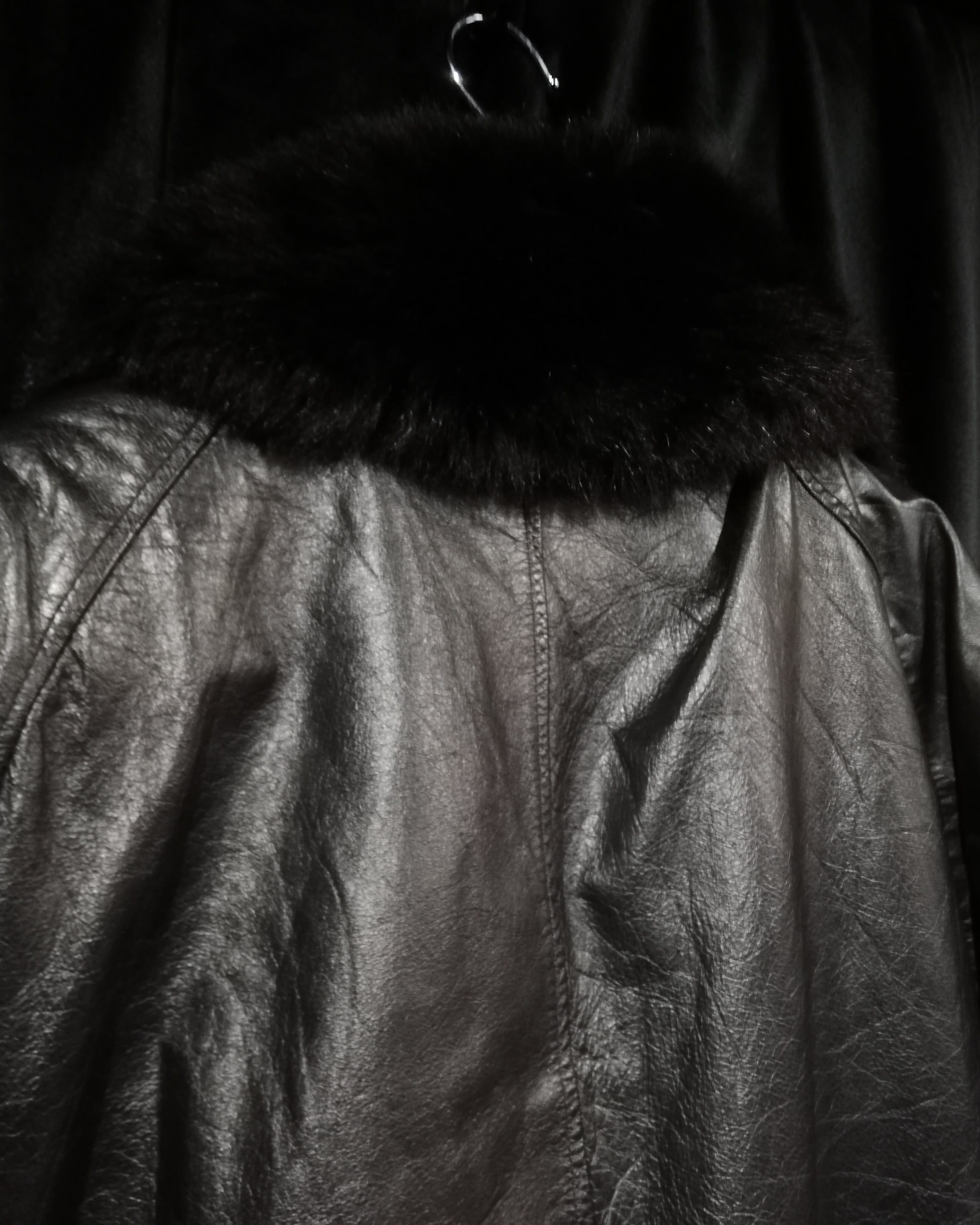 当店の代名詞の1つである"極上"レザーにファーの掛け合わせと、デザインの希少性もさることながら、素晴らしいデザイン、シルエットに仕上げられた、類稀なる至極の逸品です。