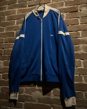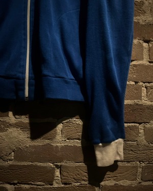 ブルーのボディに、ホワイトを切り替えたニット生地を用いたトラックジャケット。