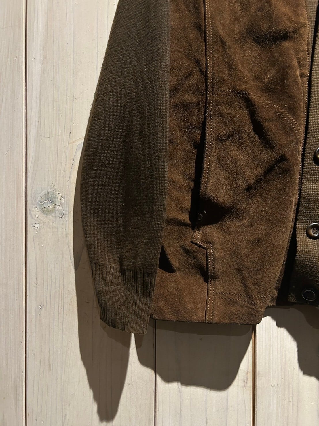 ドライな質感で肉感のあるブラウンのニットのボディに、薄手でハリのあるスエードレザーを贅沢に切り替えたニットジャケット。