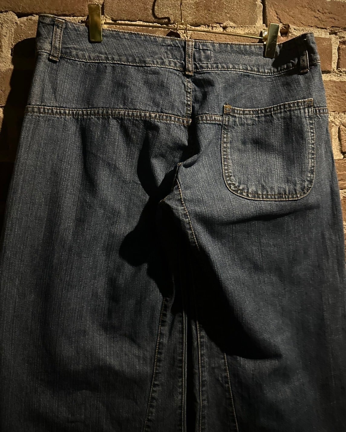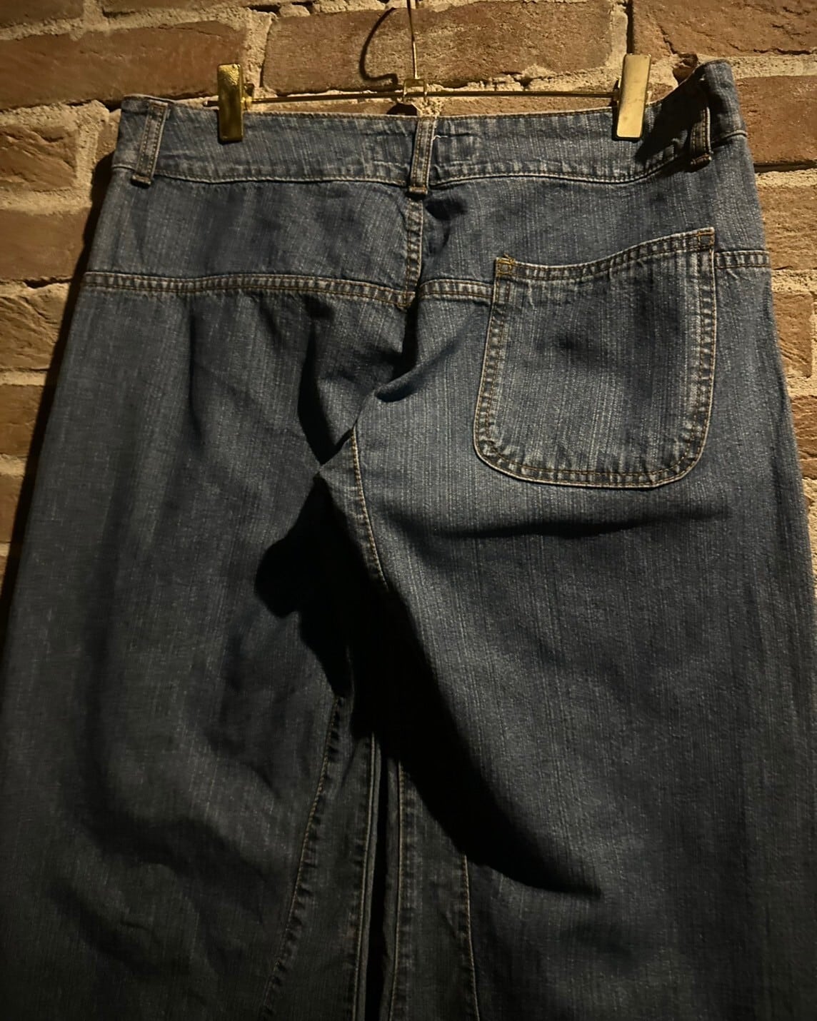 レイブデニム自体のディテールも非常に面白く、変形させたボタンフライ、生地の切り替え。そしてウエストは狭く、裾までズドンとした広がりを魅せる1980年代に広まったレイヴパンツ特有の太さが堪らなく格好良い、、、着用時の満足度は非常に高いかと。