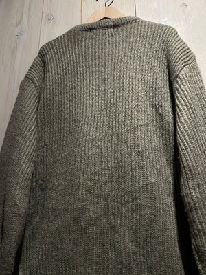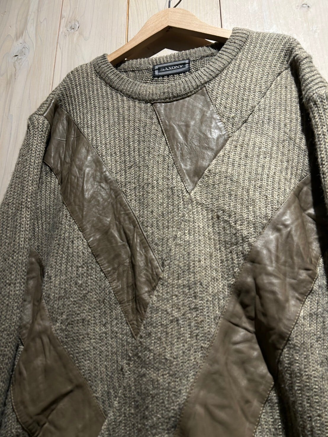 柔らかく肌触りの良いベージュのニットのボディに、レザーを前身頃に切り替えた"SAXONY"のヴィンテージニット。