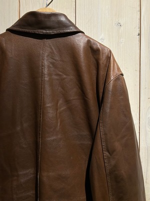 ハリ、柔らかさのあるブラウンレザーを用いて、シンプルなジップアップ型に落とし込んだ1着。イタリア製のレザーでシンプルな物は稀有ですね。