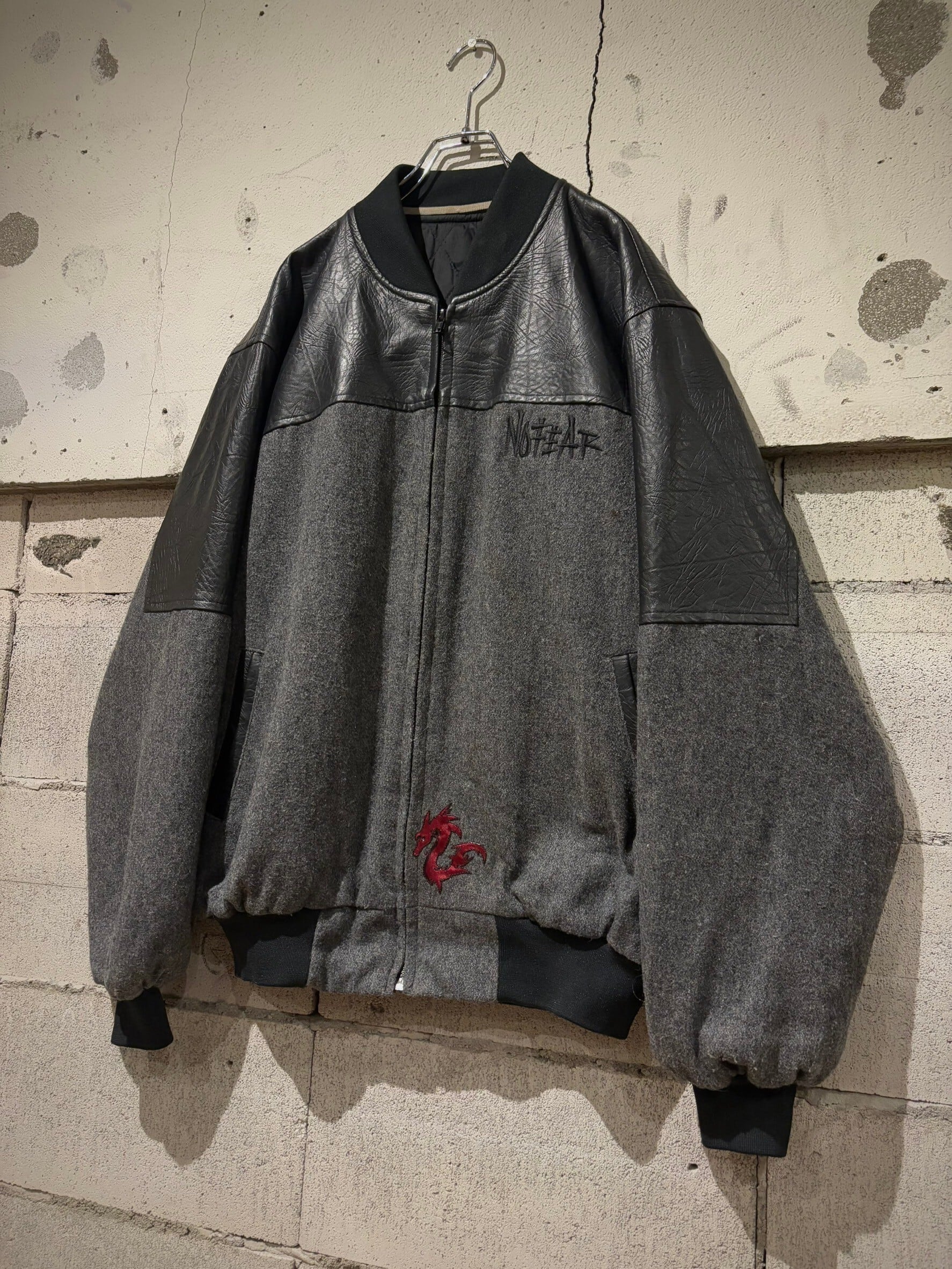 ウール×レザーを切り替えたボディに、左胸や背面にはブランドロゴ、裾付近に龍のワッペンを載せた、デザインのノリが最高なスタジャン。