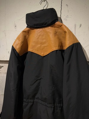 ハリのあるブラックのナイロンを用いたボディに、オレンジブラウンの上質なカウレザーを切り替えたパデットジャケット。