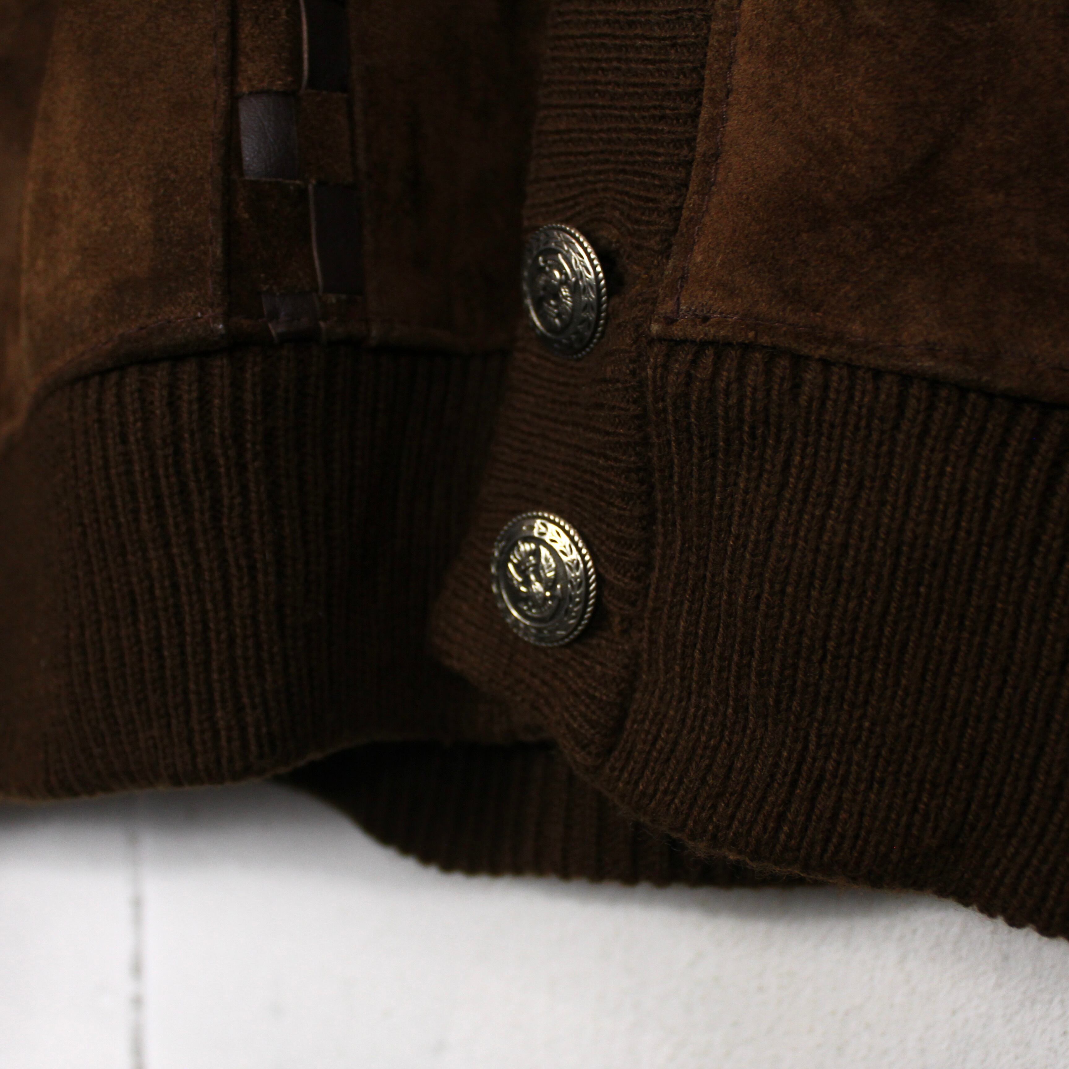 サラリと軽やかなニットを用いたボディに、前身頃に贅沢にスエードレザーを切り替えたカーディガンジャケット。