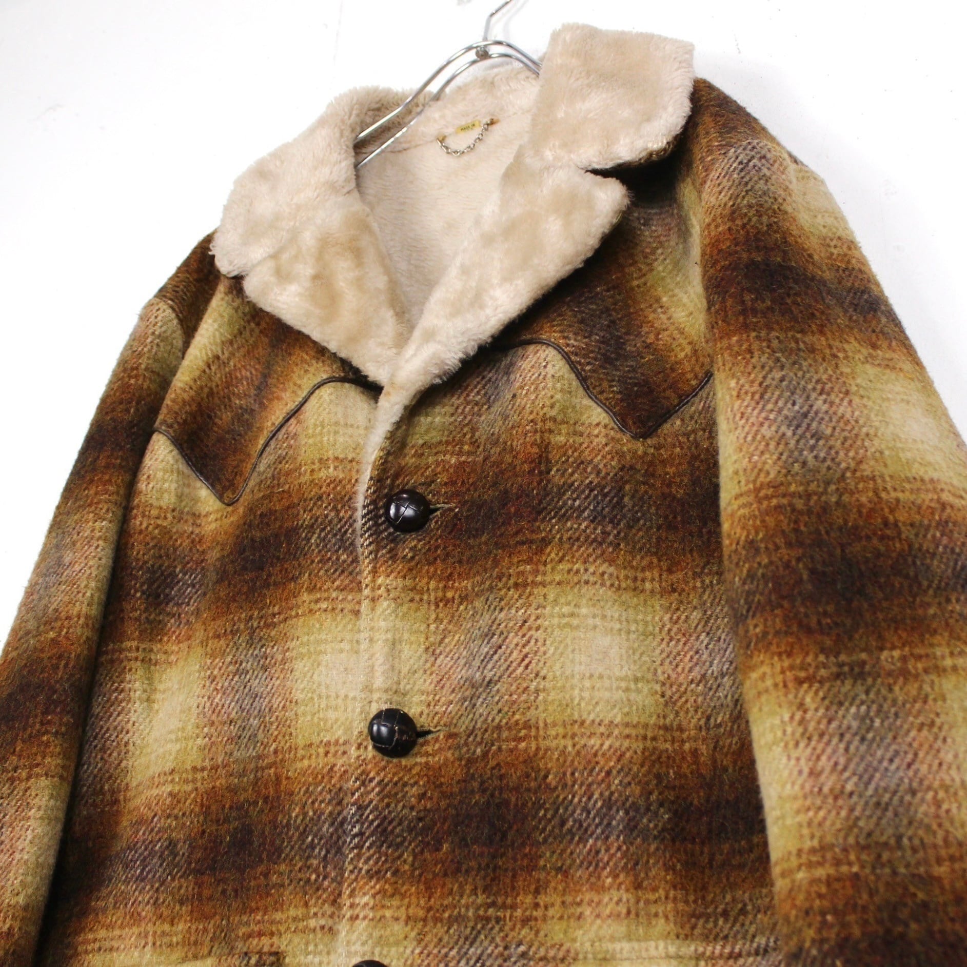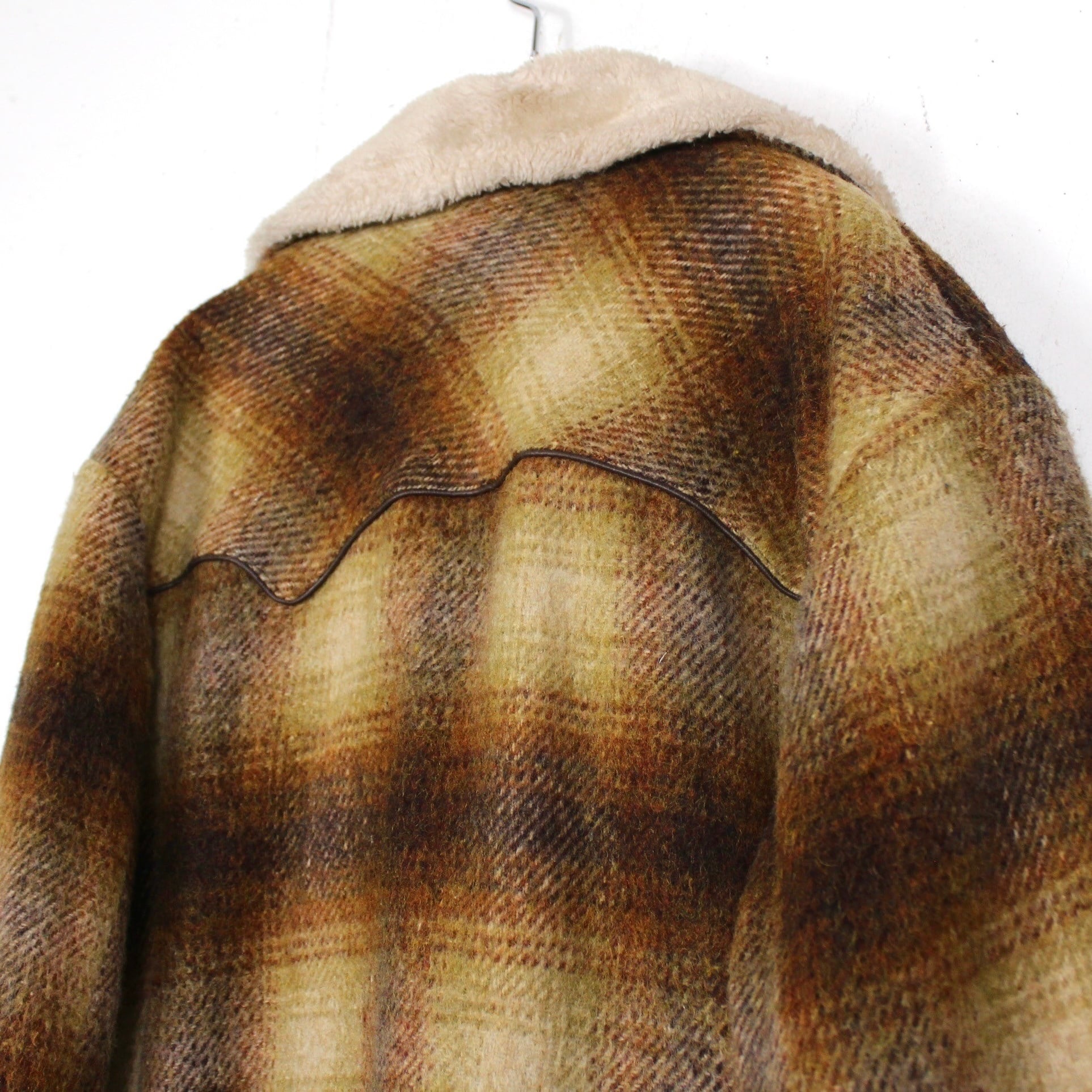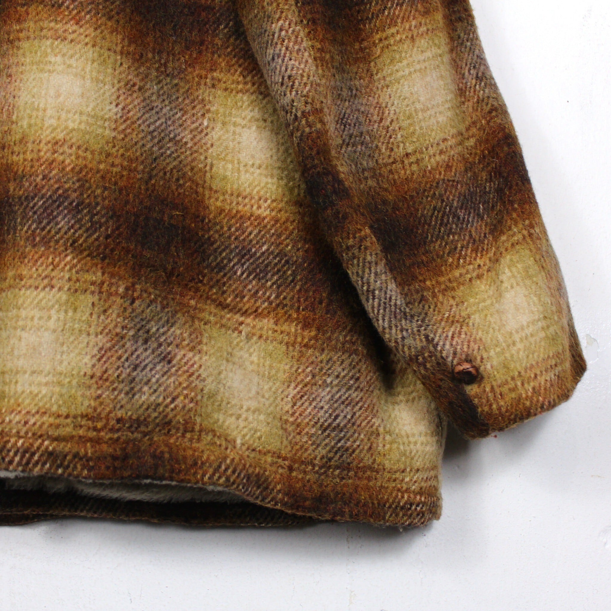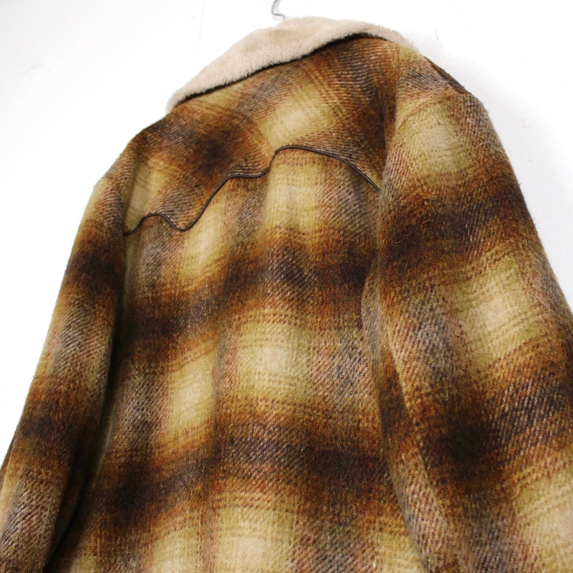 肉感のあるウール生地を用いたボディに、ブラウンをベースとした非常に稀有なオンブレチェックを載せた70'sのギャングコート。