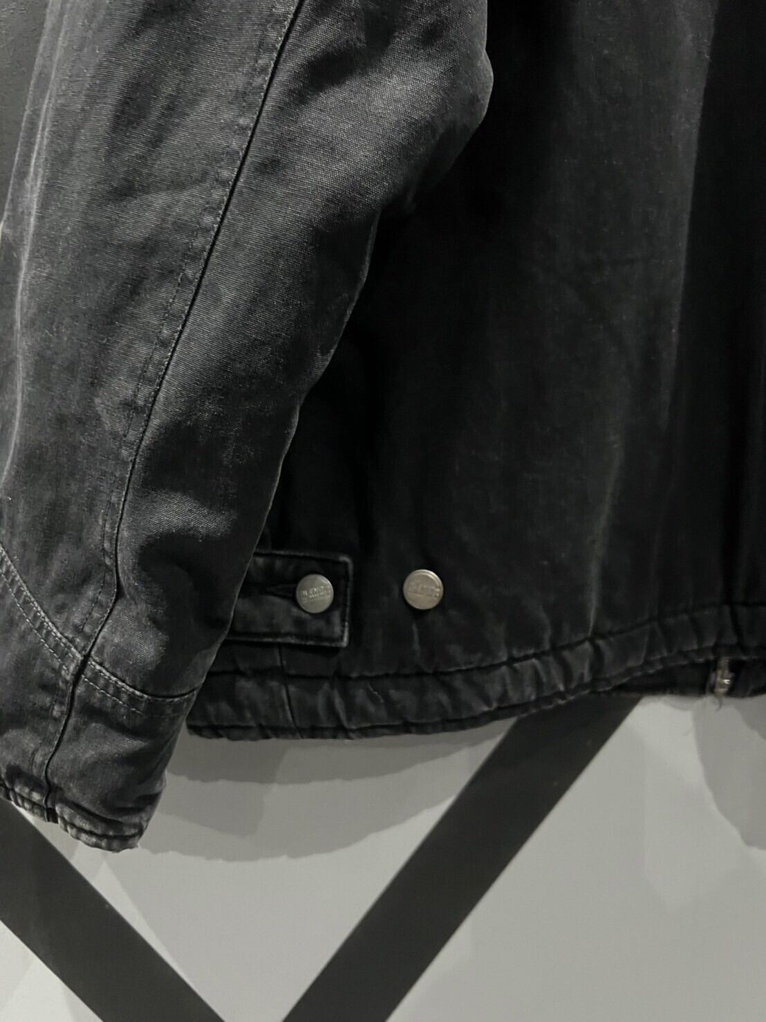 ブラックのタフかつコシのあるダック地を用いたジップアップのジャケット。ボディサイドにスラッシュポケットを施した、シンプルでミニマルなルックスにグッときますね。