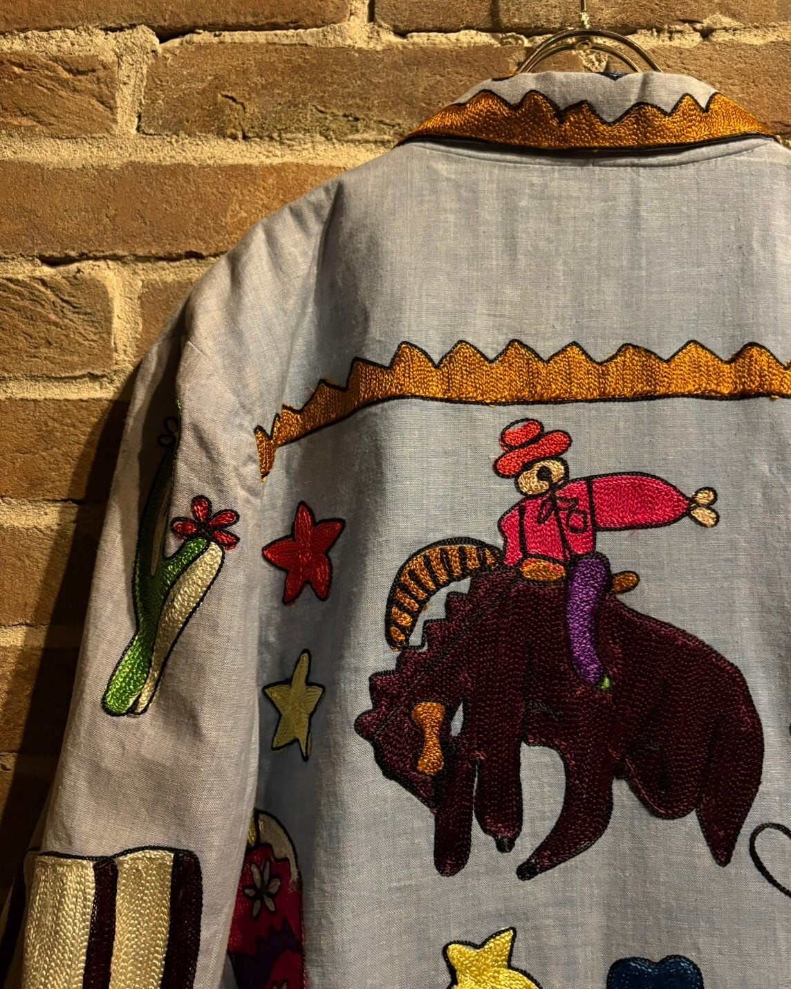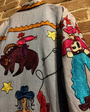 ハイクオリティな刺繍で表現されたウエスタンデザインが唯一無二感、レトロなフレーバーを漂わせる、当店ならではのスペシャルな1着です。