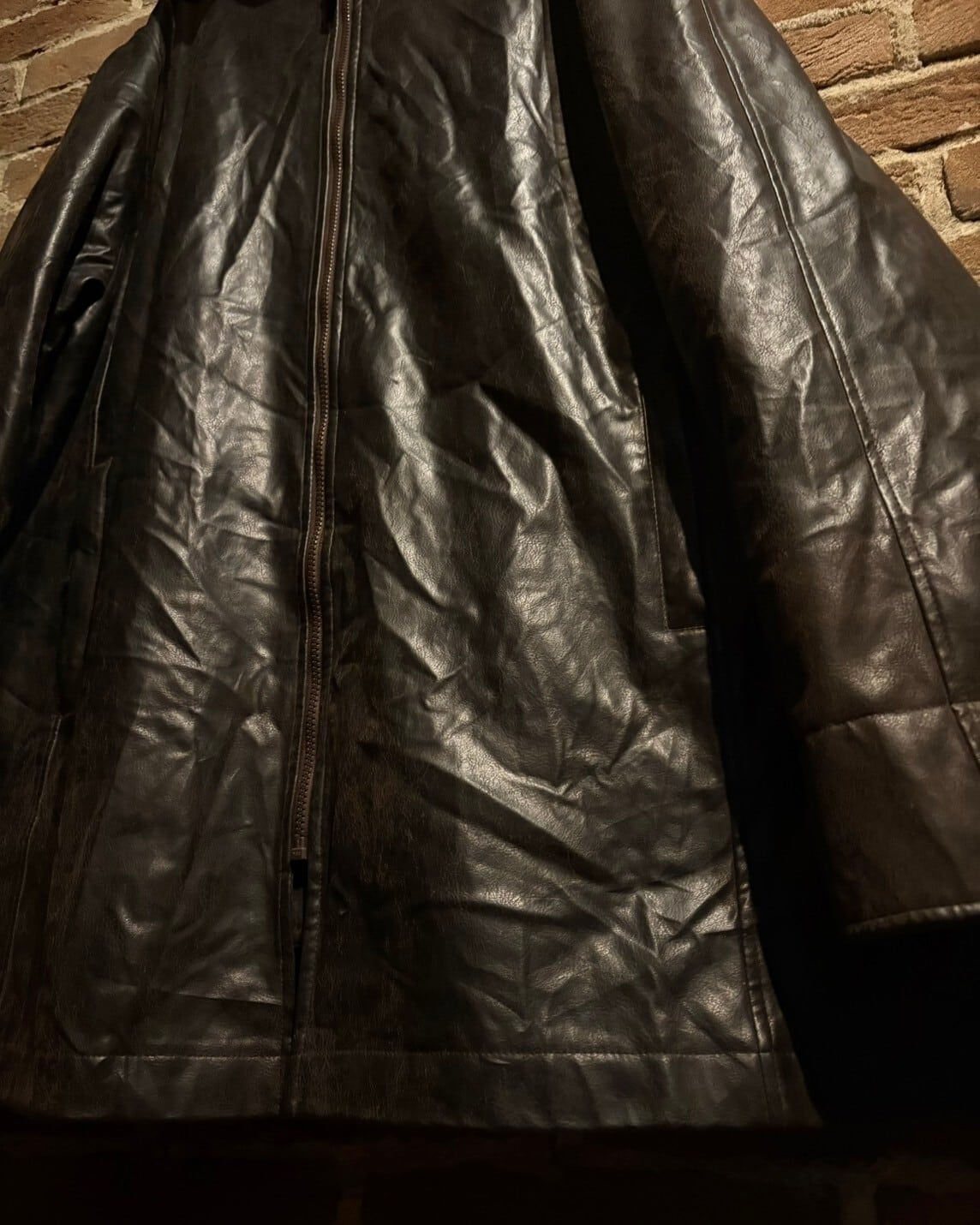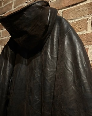 リアルレザーの様な風格を漂わせながらも、肩の力を抜いてラフに着用いただけるフェイクレザーコートの逸品です。