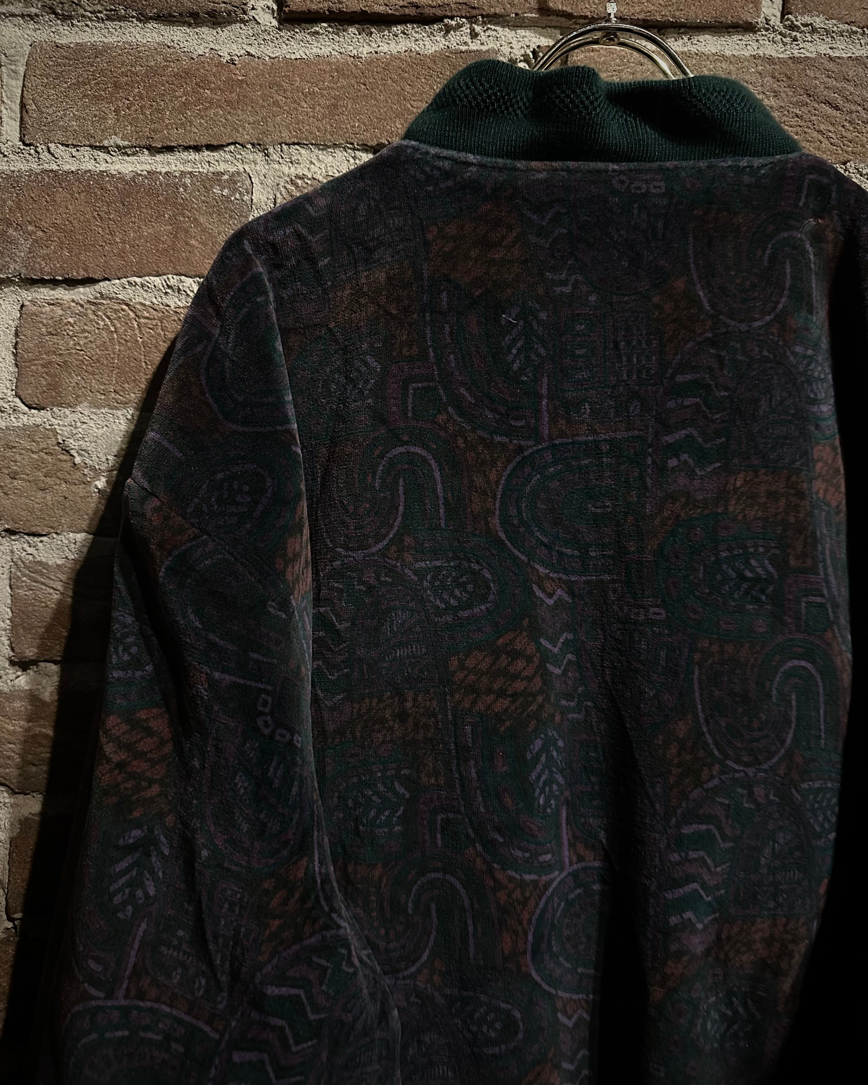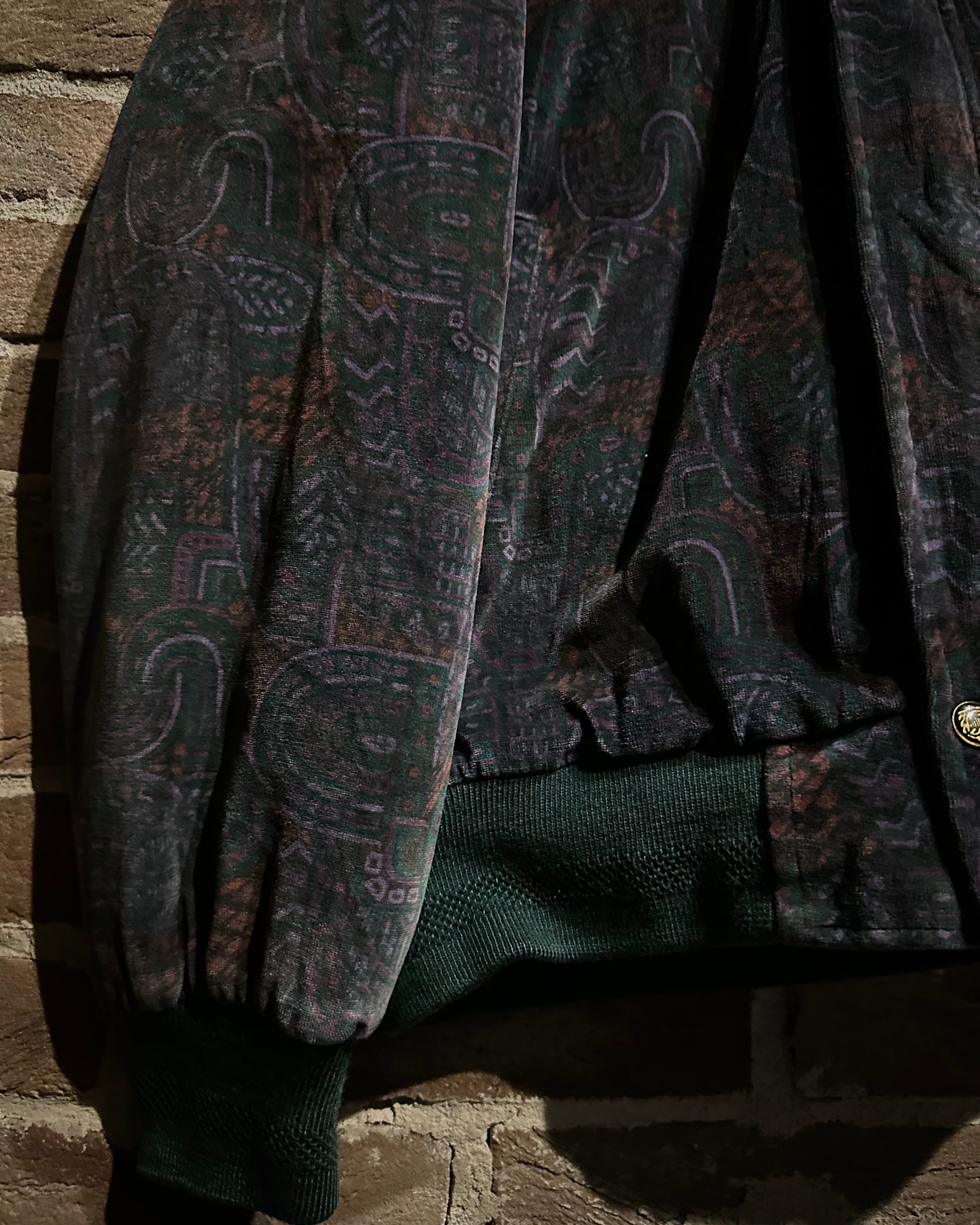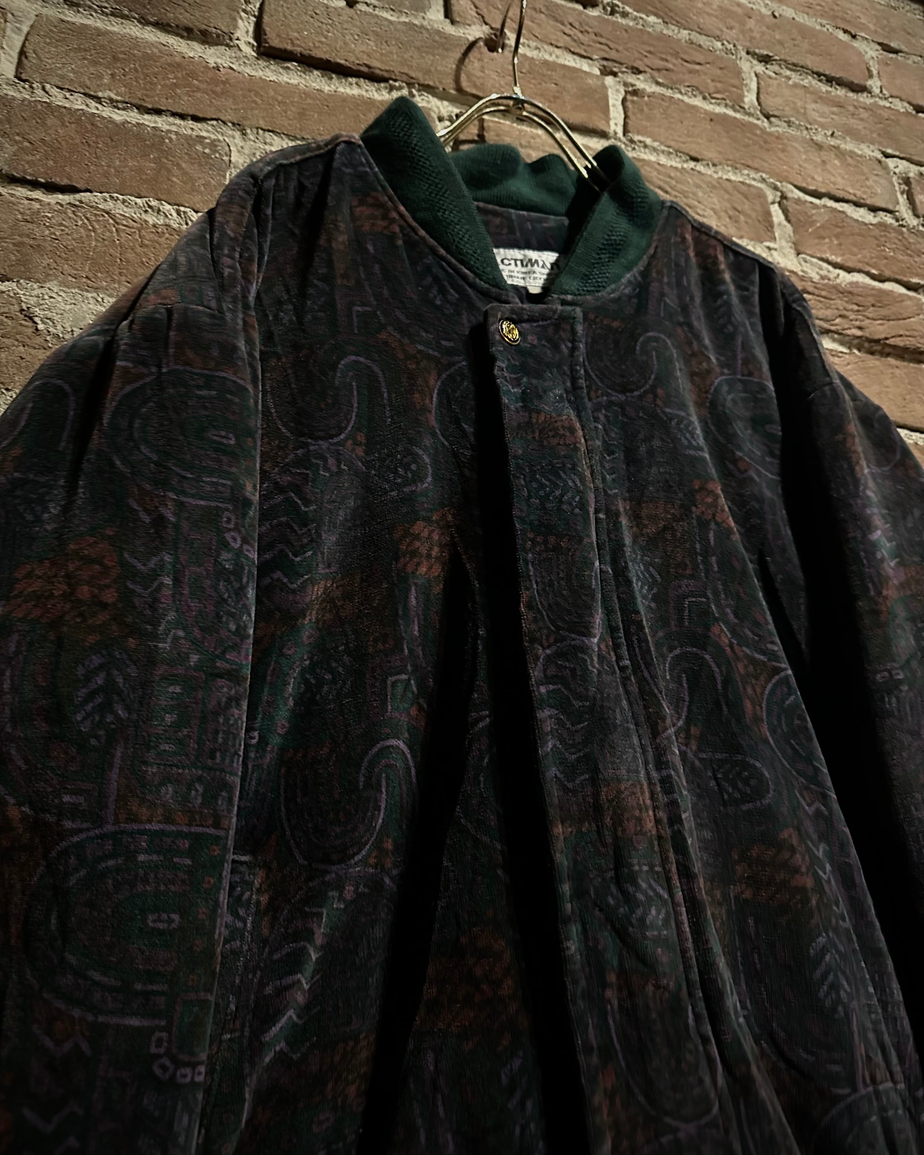 ベロアの質感、柄模様がマッチして雰囲気を醸し出しながらもデイリーなブルゾン型に落とし込んだ事で、ファッショナブルな仕上がりに。