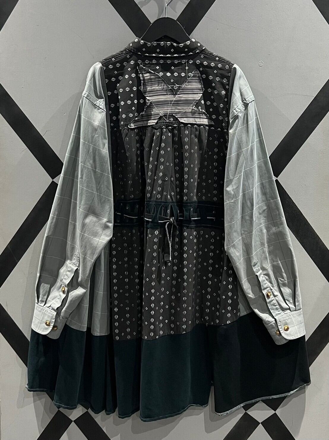 身頃、アーム、裾など異なる生地をパッチワークし、右胸、左身頃、背面にはアート調のパッチ。様々な生地を用いながらもシルエットはしっかりと美しく、非常にセンスに富んだ1着かと。