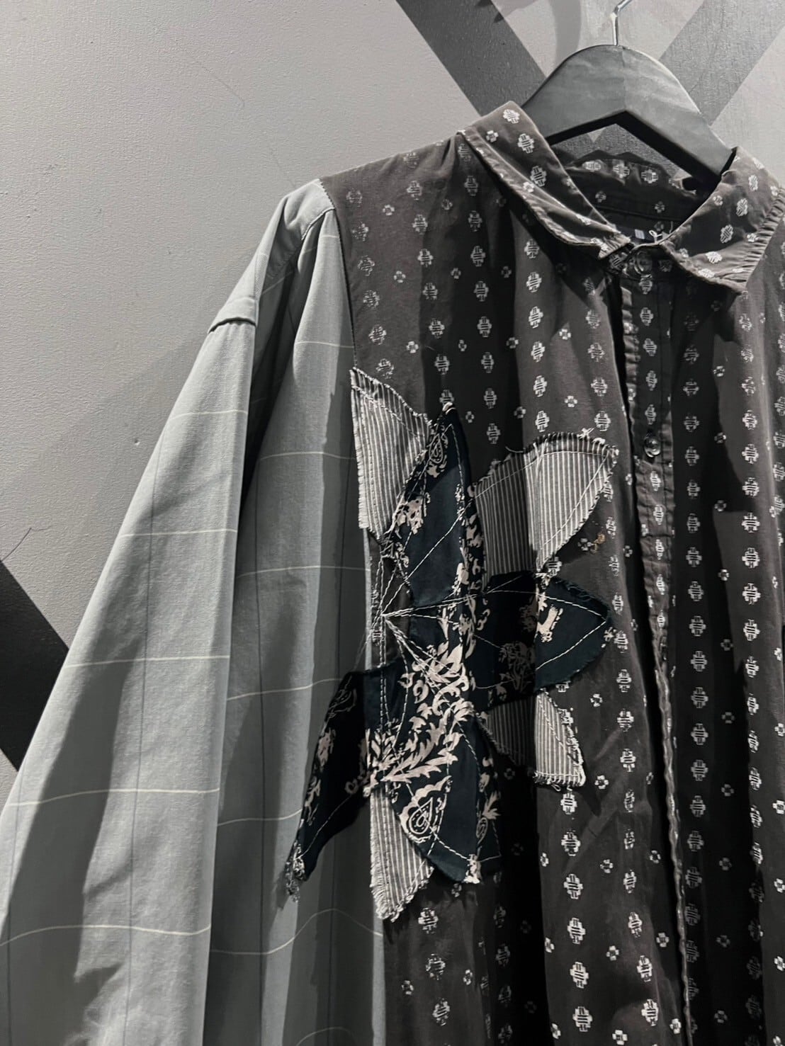 前所有者によって、様々なカットソーをパッチワークして1着の長袖シャツへと仕上げた、リメイクの逸品。