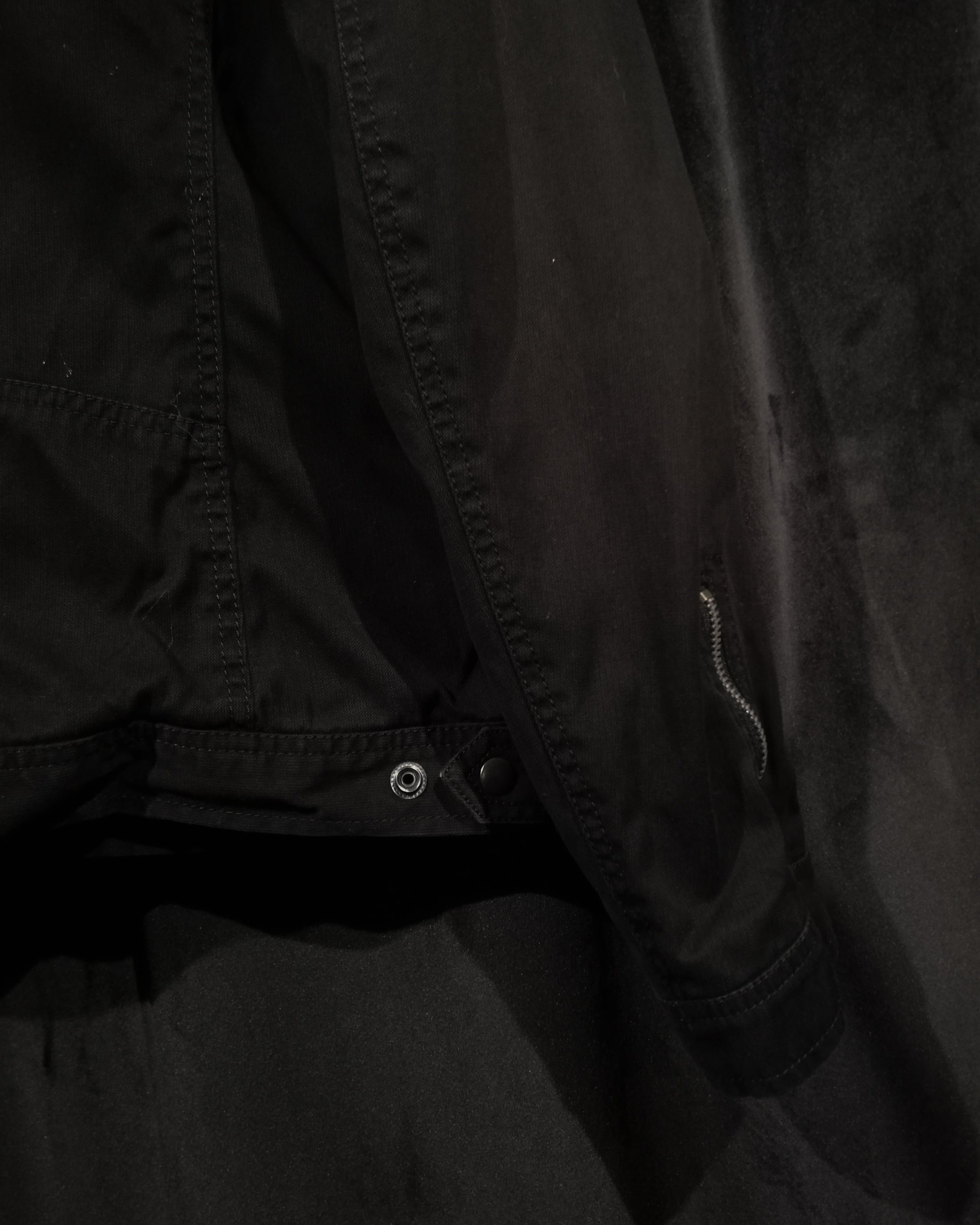 首元にはスナップが取り付けられたスタンドカラー仕様に短丈のスッキリとしたシルエットで、テクニカルなルックスながら、洗練されたモードな雰囲気も感じられます。