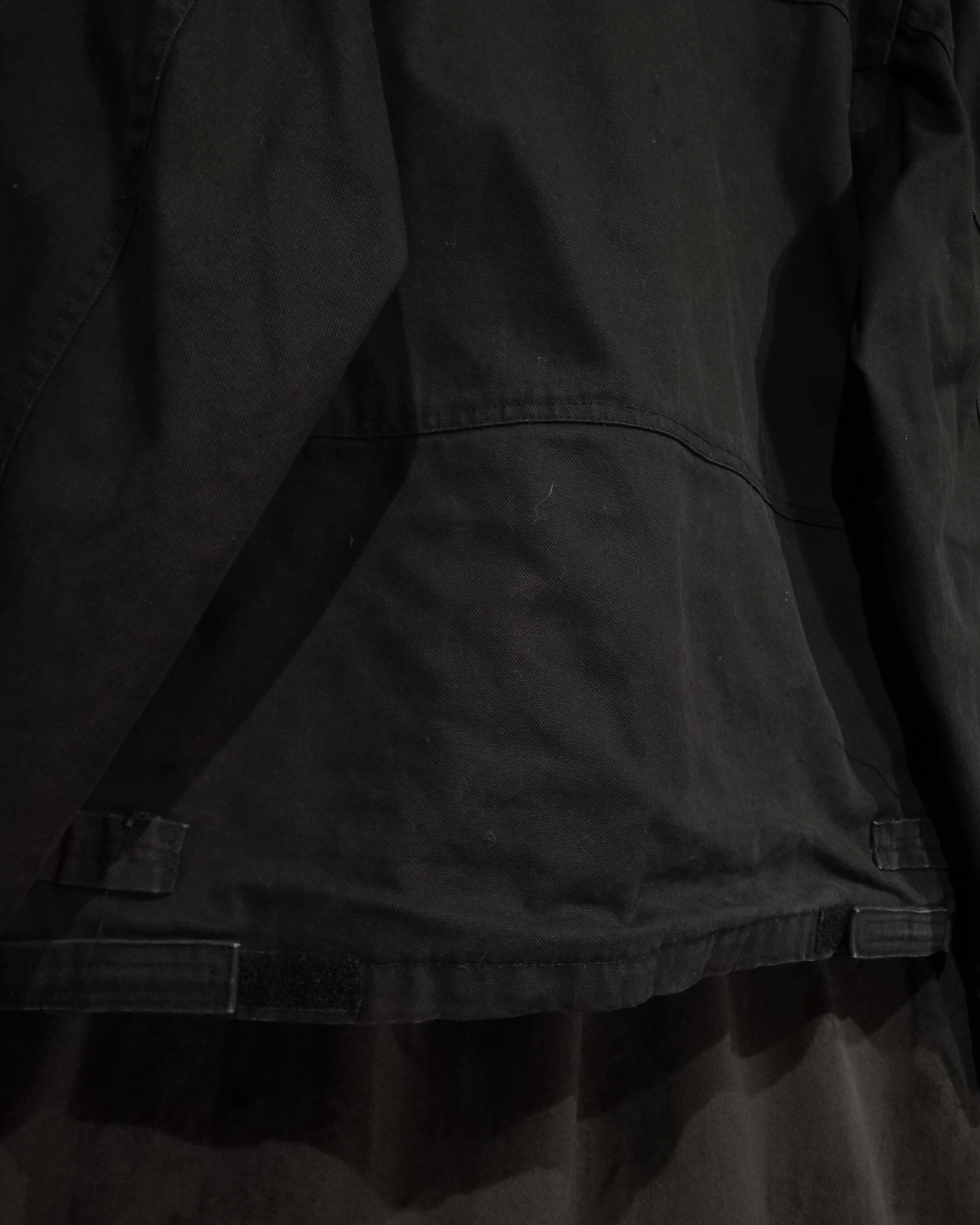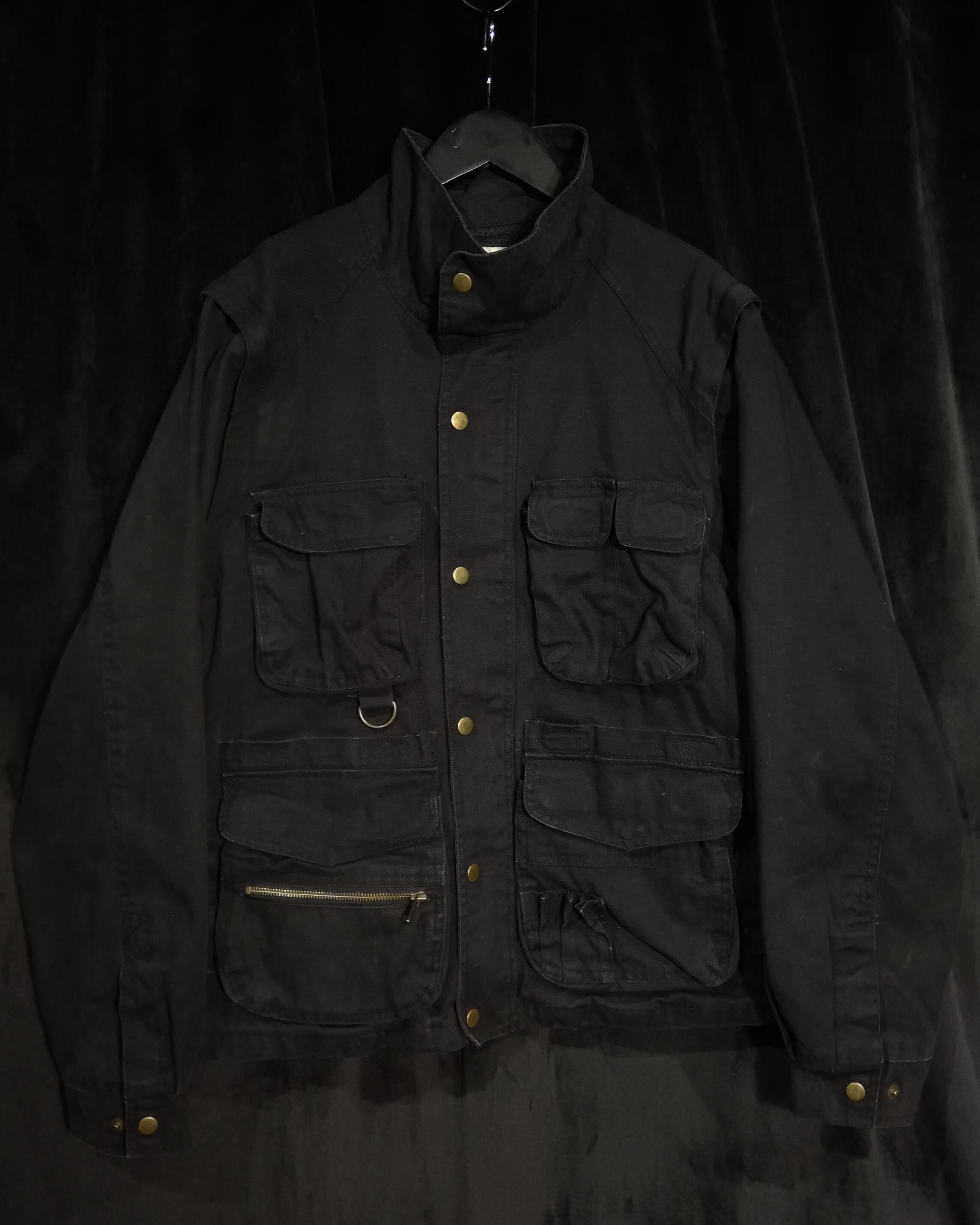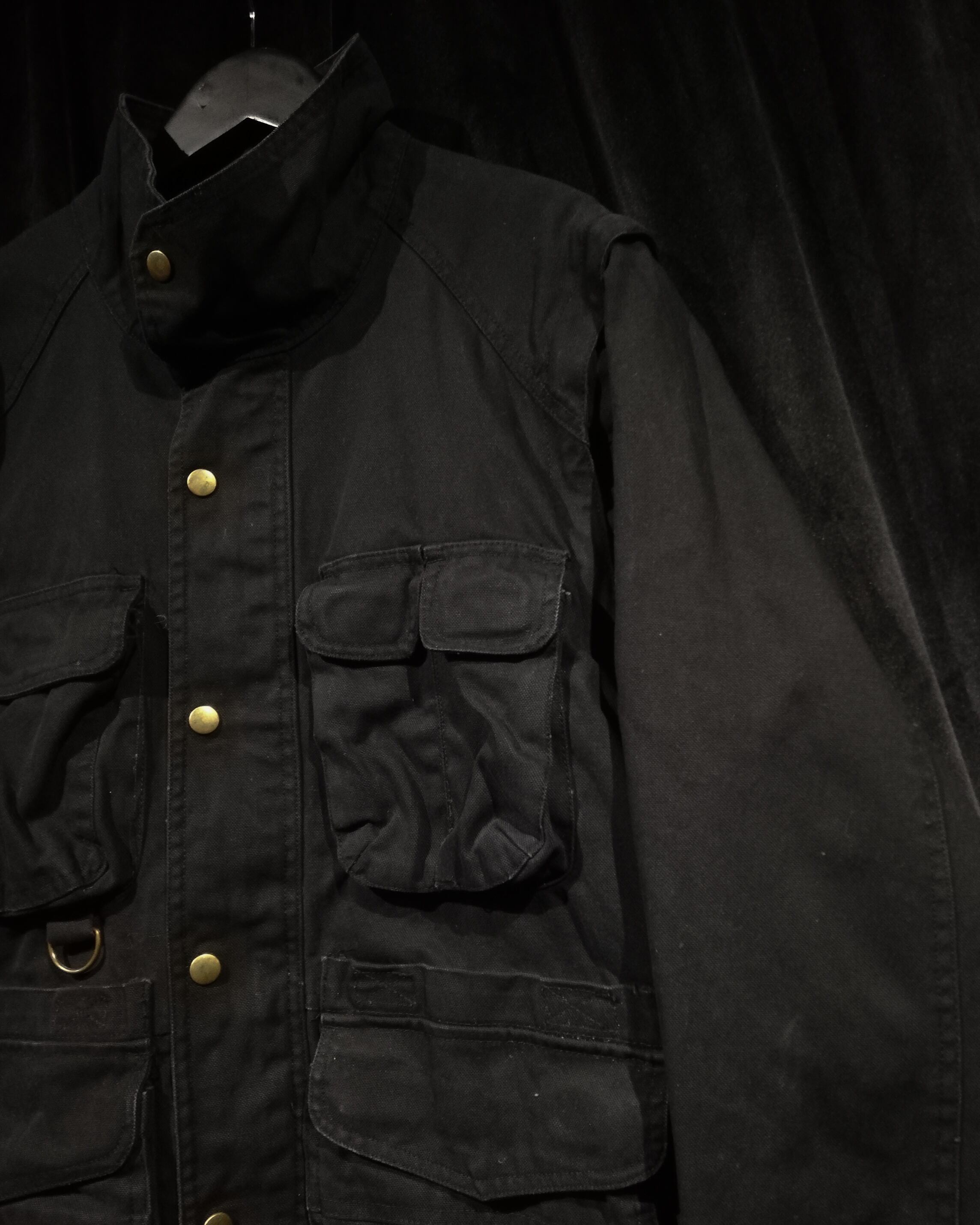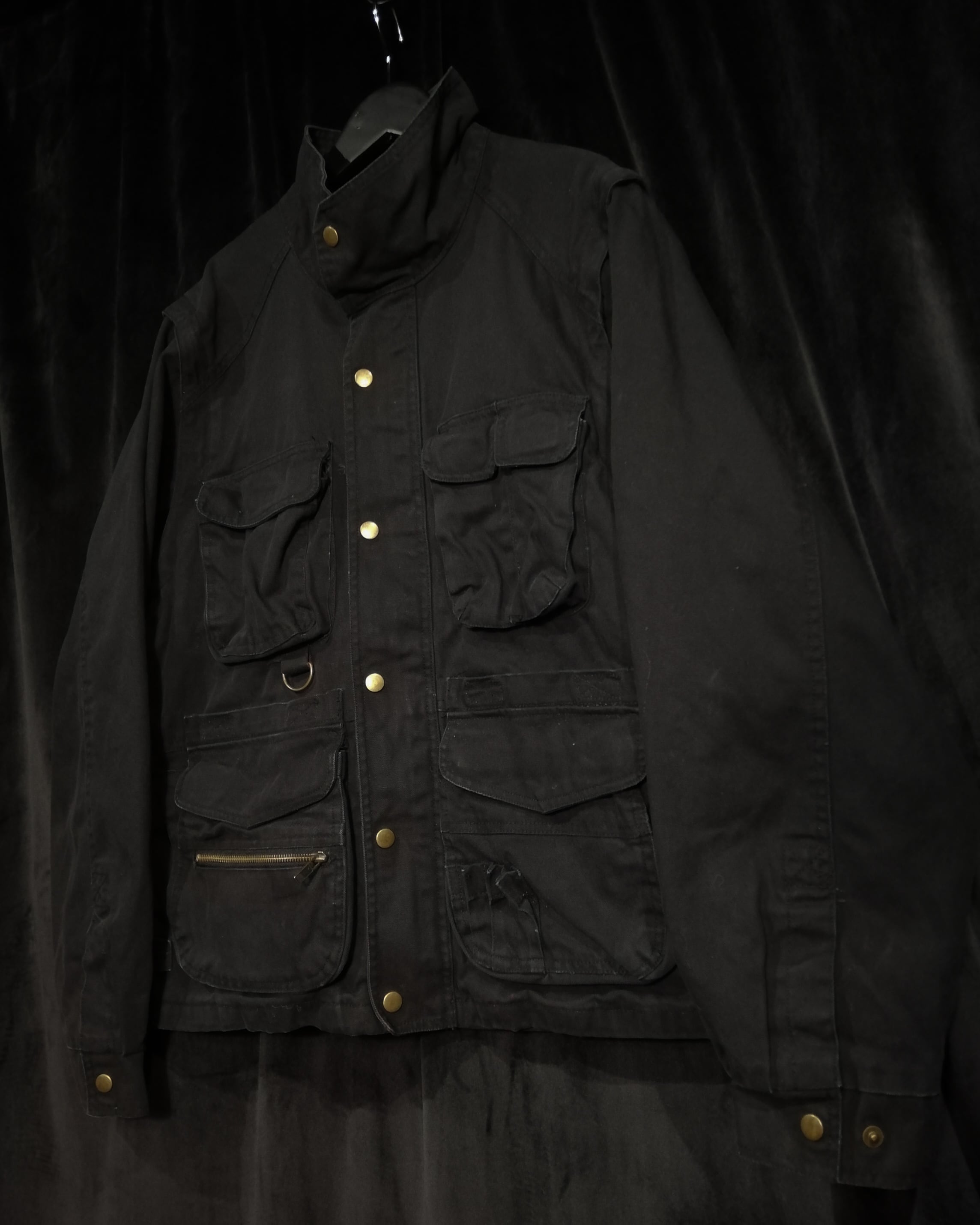 フロントに4つのマチ付きフラップポケット、その上からジップを重ねたギミックも載った、抜群の収納力を誇るジップアップジャケット。