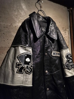 こちらの個体も超スペシャル。XXXXLの超〜ルーズなサイジングにモノトーンベースのブラック×ホワイトのオールレザーで仕上げられた1着。
