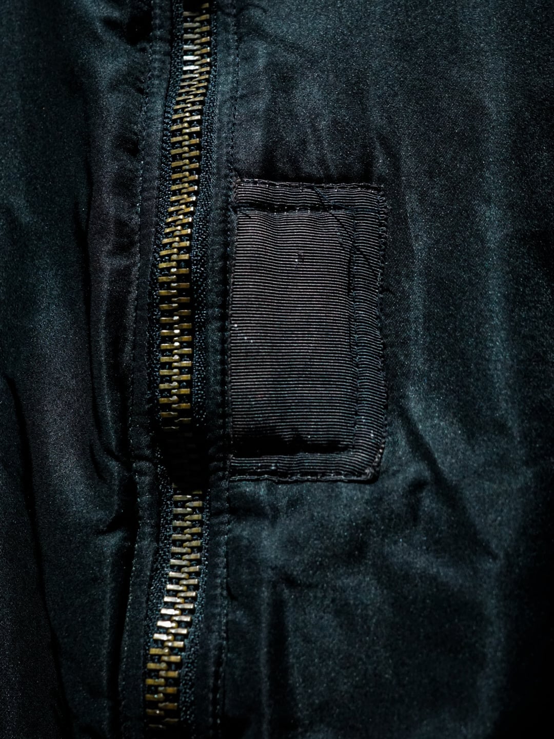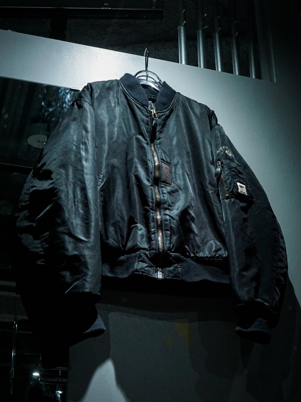 艶やかな光沢を帯びたブラックカラーで仕上げられた、MA-1ジャケットご紹介いたします。